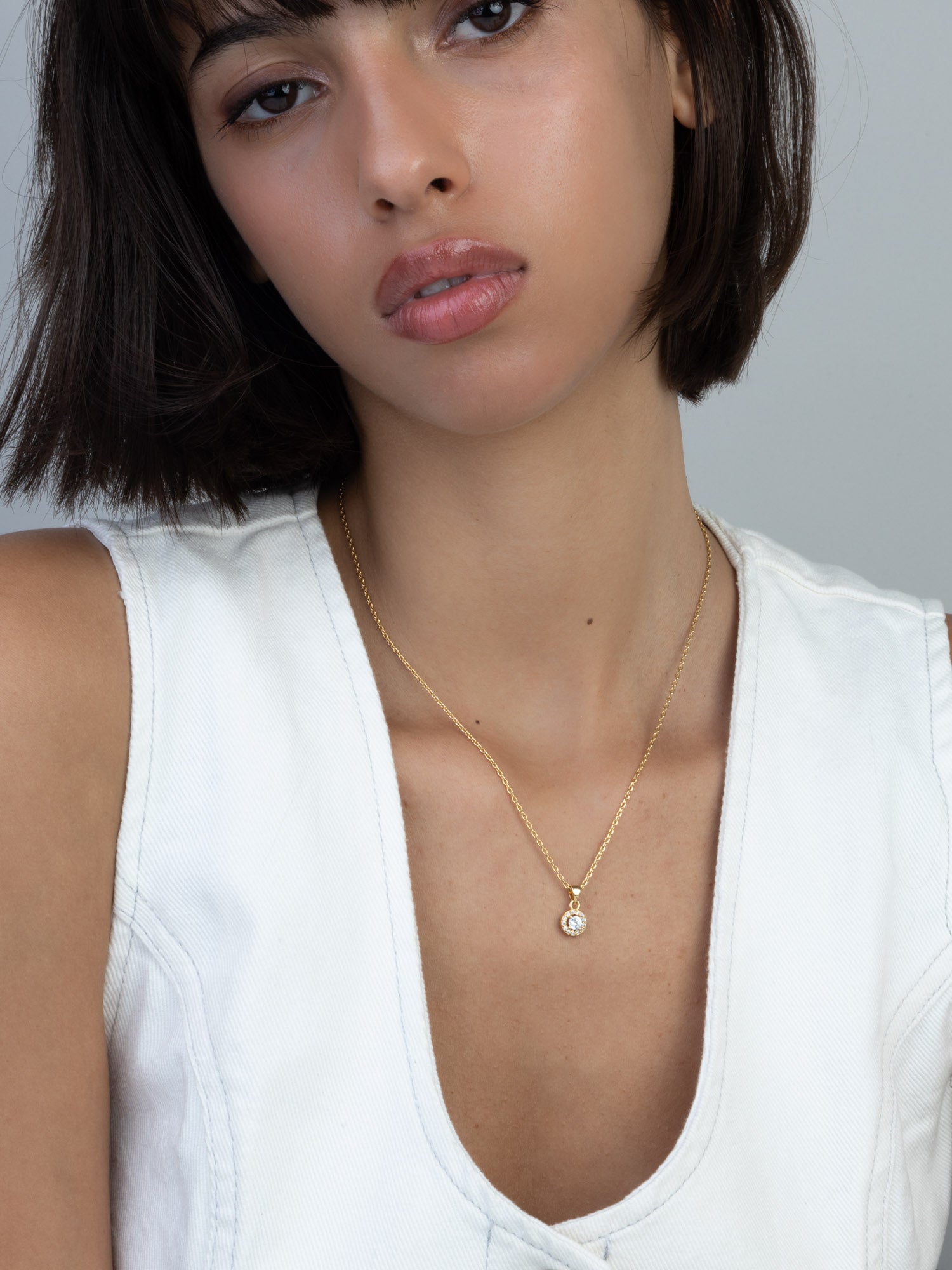 Collar colgante, Plata 925 y bañado en oro, Zirconia cúbica artificial