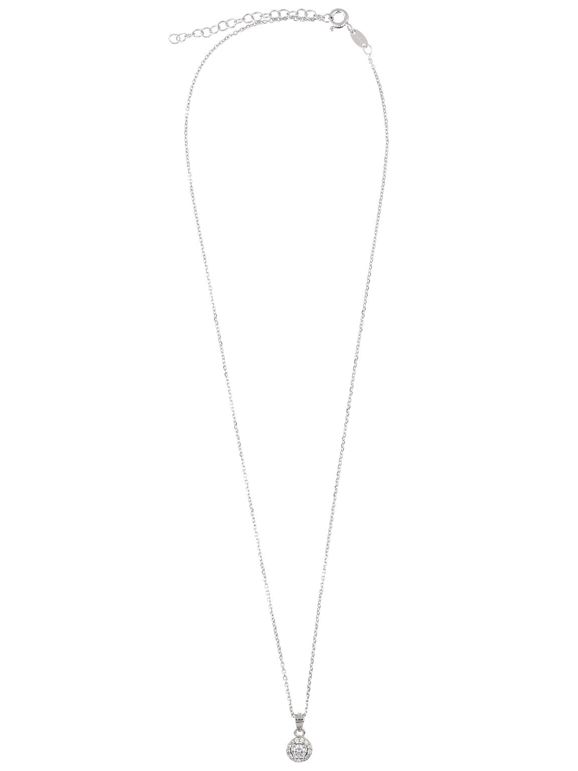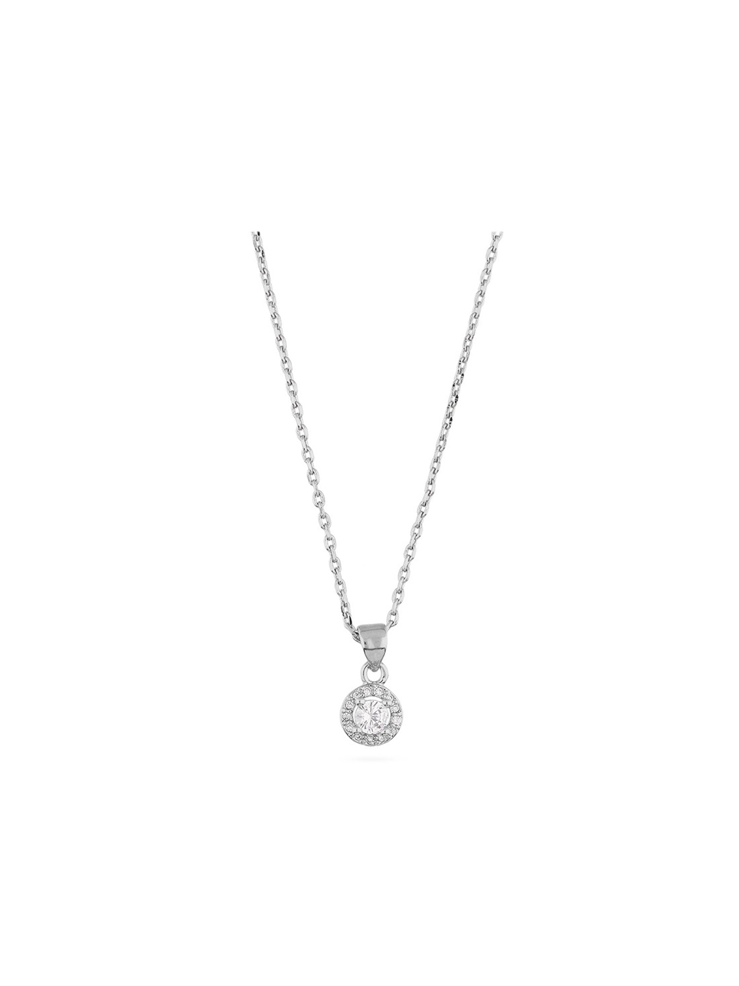 Collar colgante, Plata 925 bañada en rodio, Zirconia cúbica artificial, Claro, Círculo, Artificial, Color plateado, longitud del colgante: 1.5 cm, ancho colgante: 0.7 cm, 4.00 g