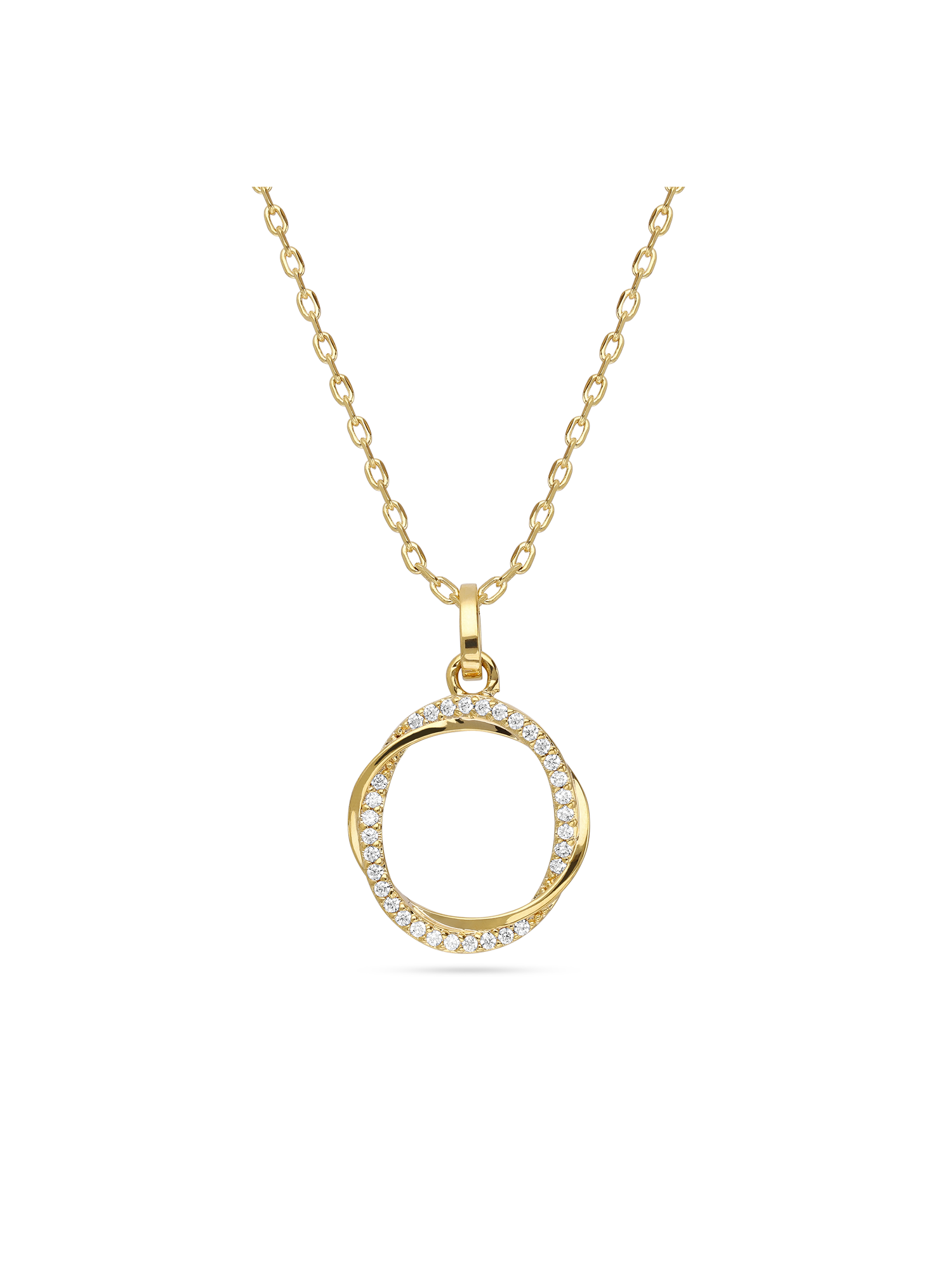 Collar colgante, Bañado en oro, Zirconia cúbica artificial, Claro, Círculo, Artificial, Color dorado, longitud del colgante: 2.4 cm, ancho colgante: 1.6 cm, 3.47 g