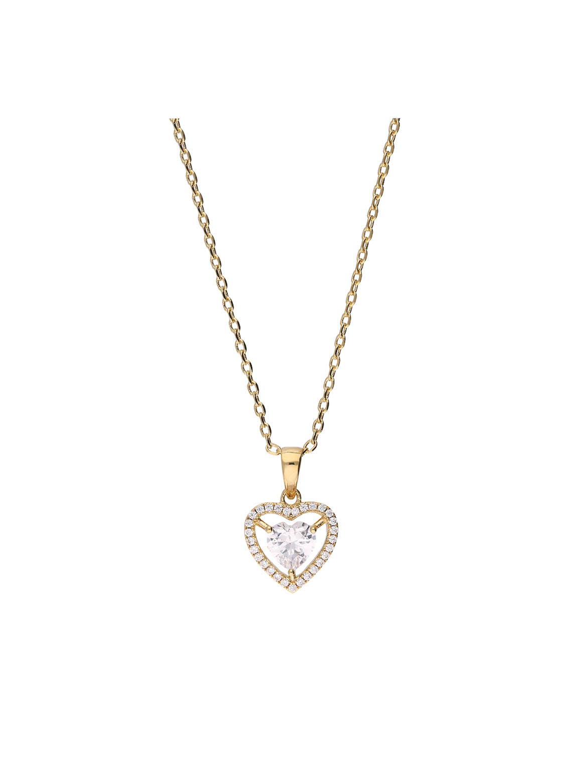 Collar colgante, Bañado en oro, Zirconia cúbica artificial, Claro, Corazón, Artificial, Color dorado, longitud del colgante: 1.5 cm, 4.04 g