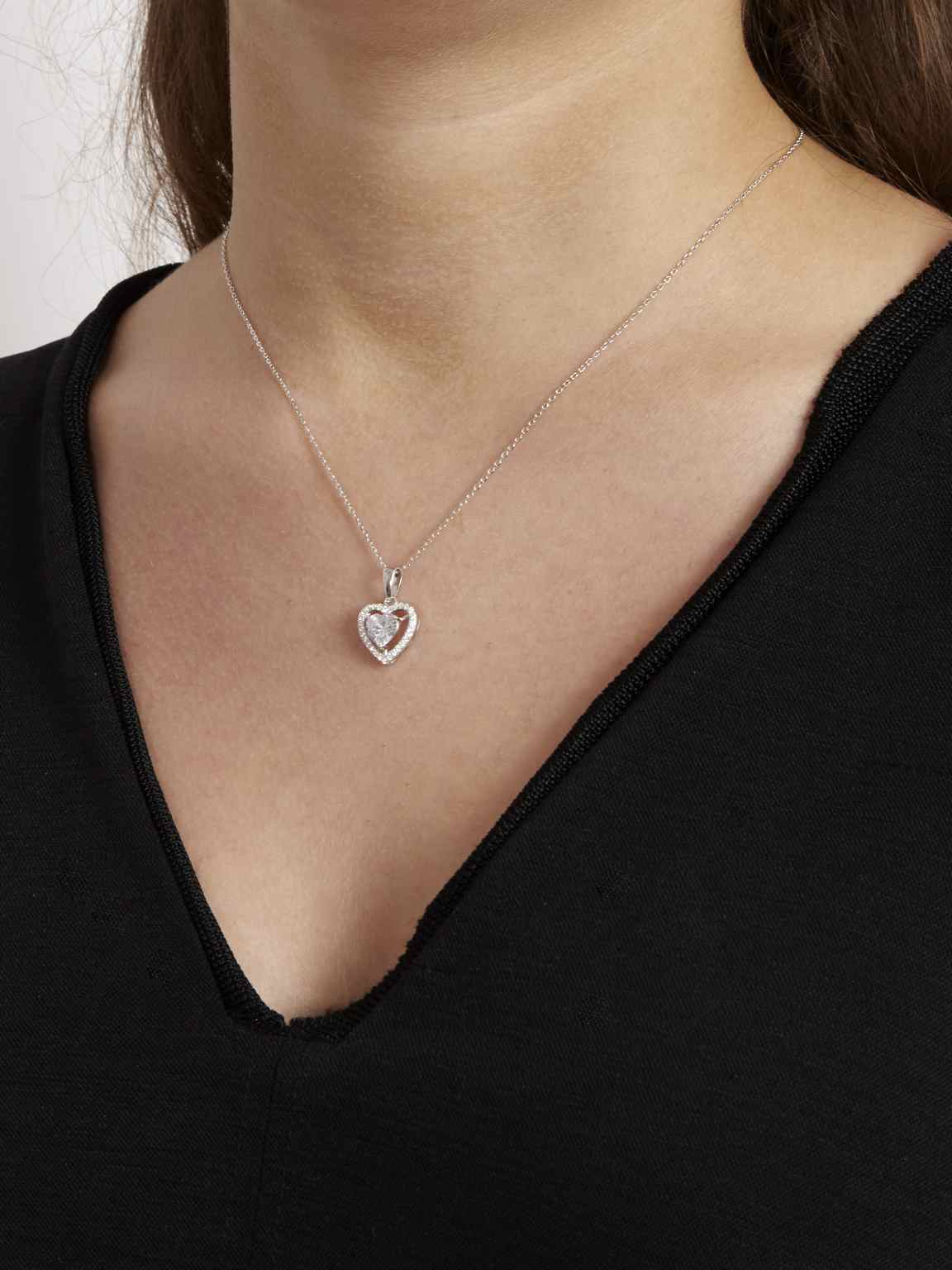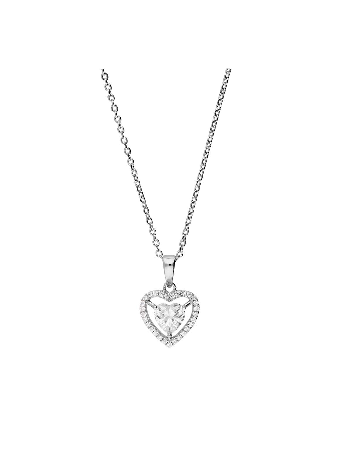 Collar colgante, Plata de Ley 925, Plata 925 bañada en rodio, Zirconia cúbica artificial, Claro, Corazón, Artificial, Color plateado, longitud del colgante: 2.0 cm, 4.68 g