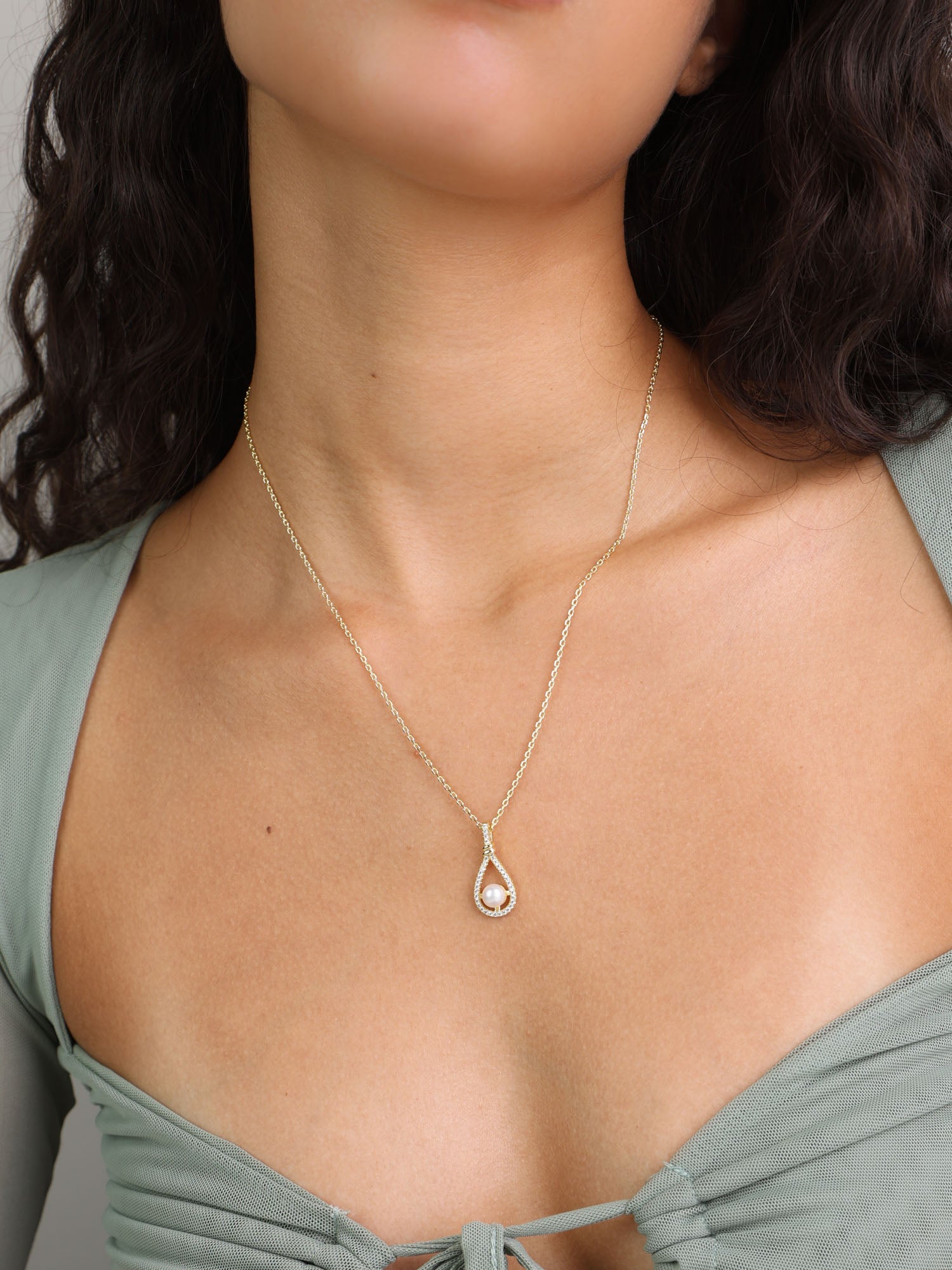 Collar colgante, Bañado en oro, Zirconia cúbica artificial, Perla cultivada