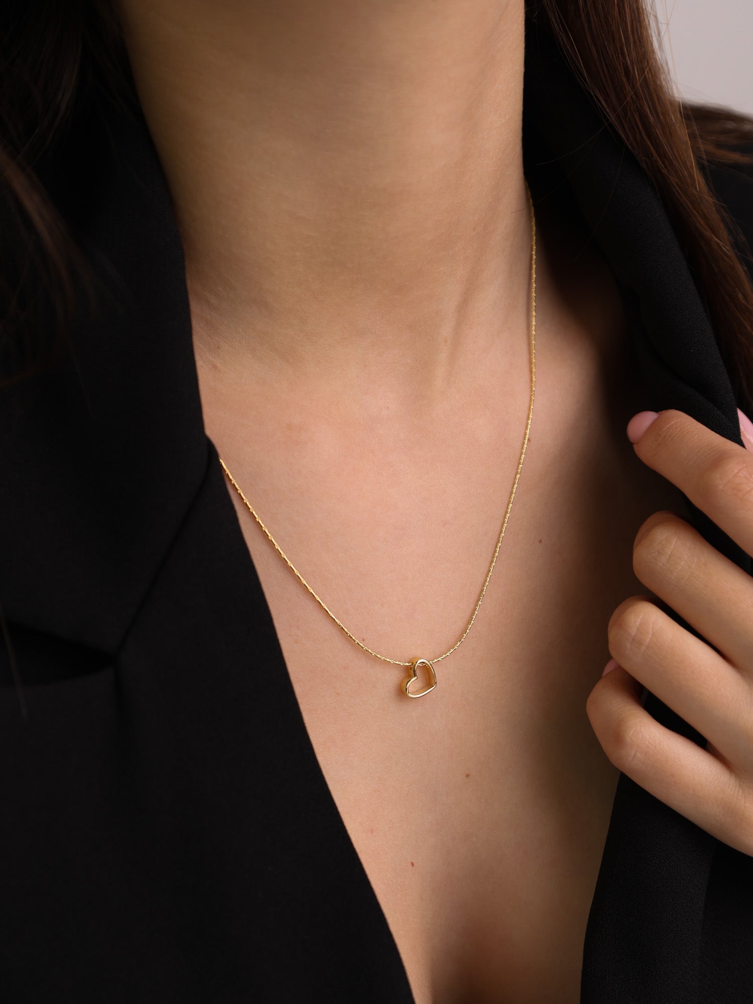 Collar colgante, Bañado en oro, Sin piedra, Sin color, Corazón, Color dorado, longitud del colgante: 0.9 cm, ancho colgante: 0.8 cm, 2.42 g