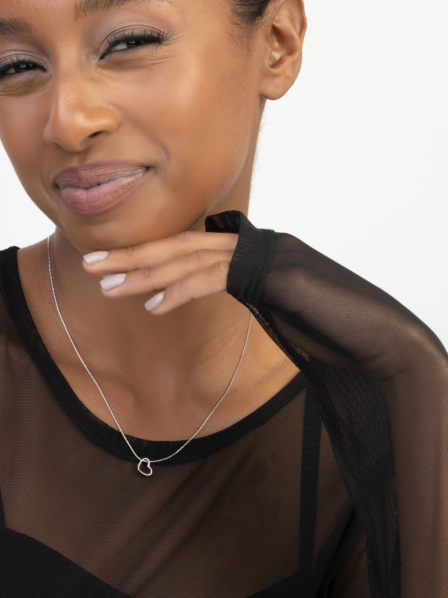 Collar colgante, Plata 925 bañada en rodio, Sin piedra, Sin color, Corazón, Color plateado, ancho colgante: 0.9 cm, longitud del colgante: 0.9 cm, 2.93 g