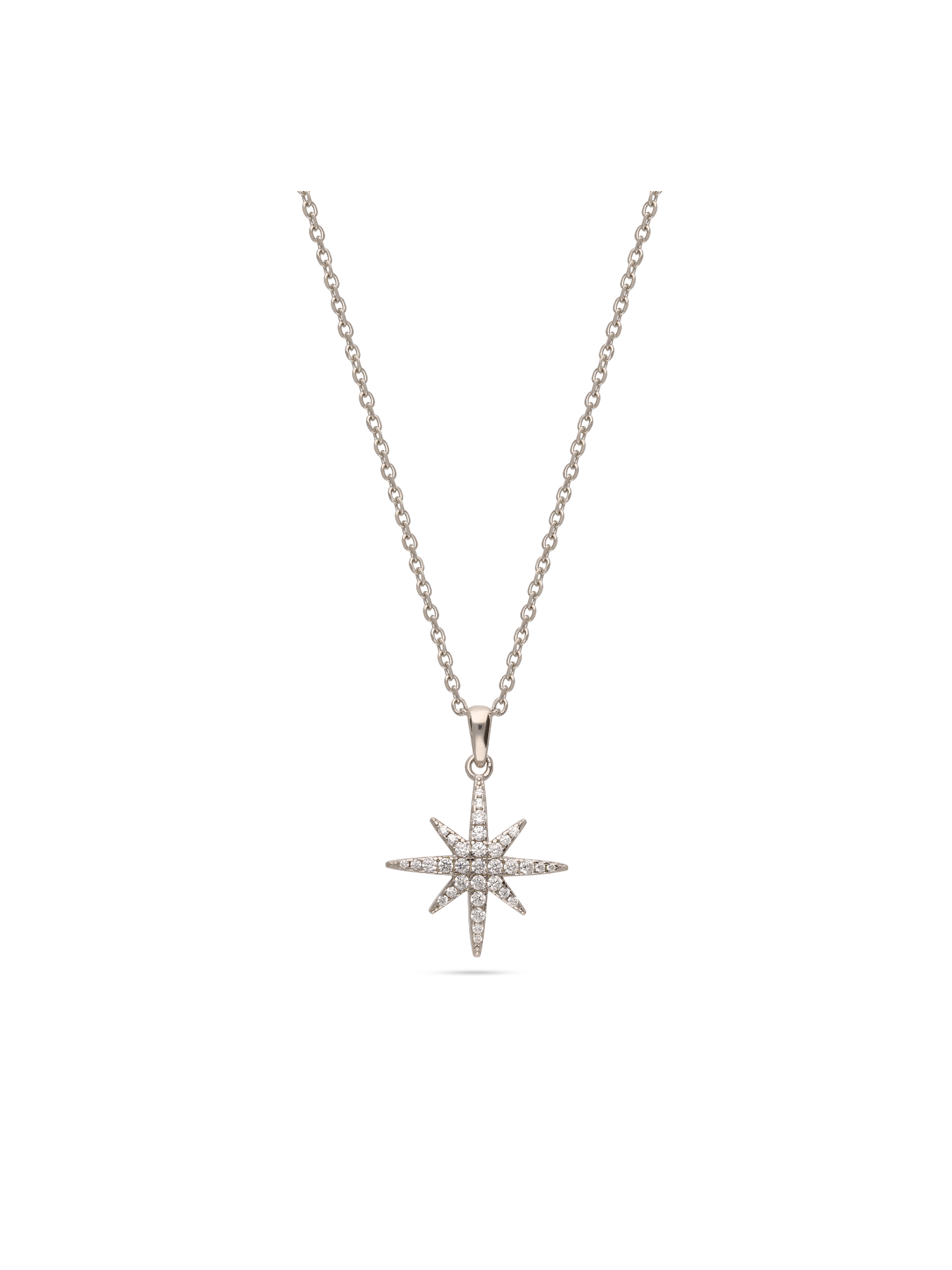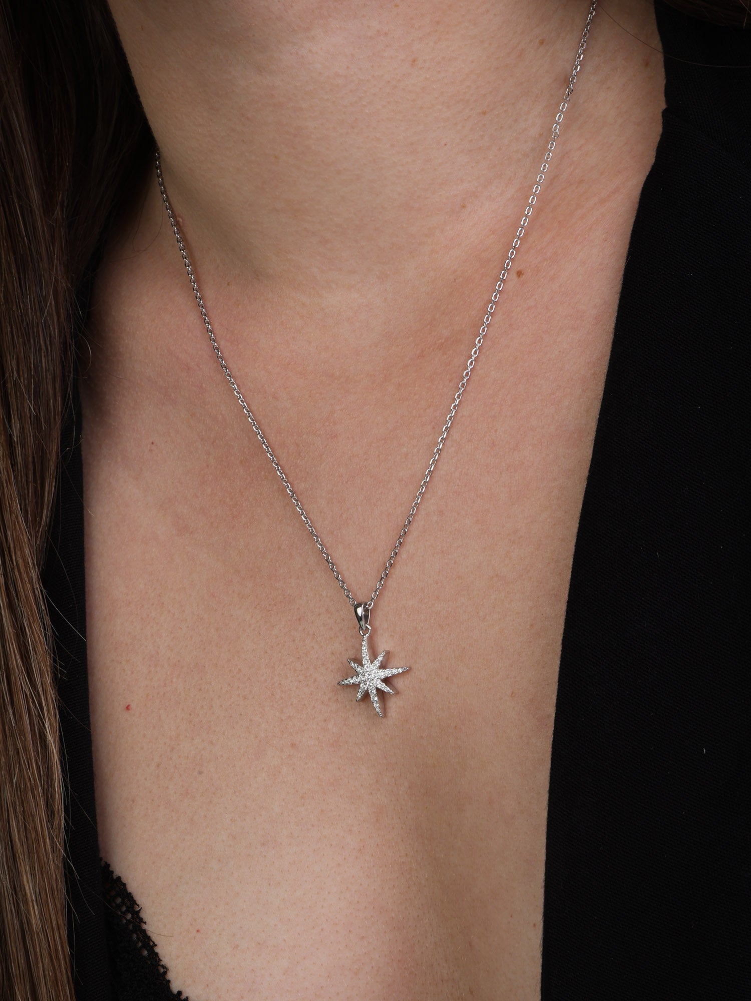 Collar colgante, Plata 925 bañada en rodio, Zirconia cúbica artificial, Claro, Estrella, Artificial, Color plateado, longitud del colgante: 2.5 cm, ancho colgante: 2.0 cm, 2.90 g