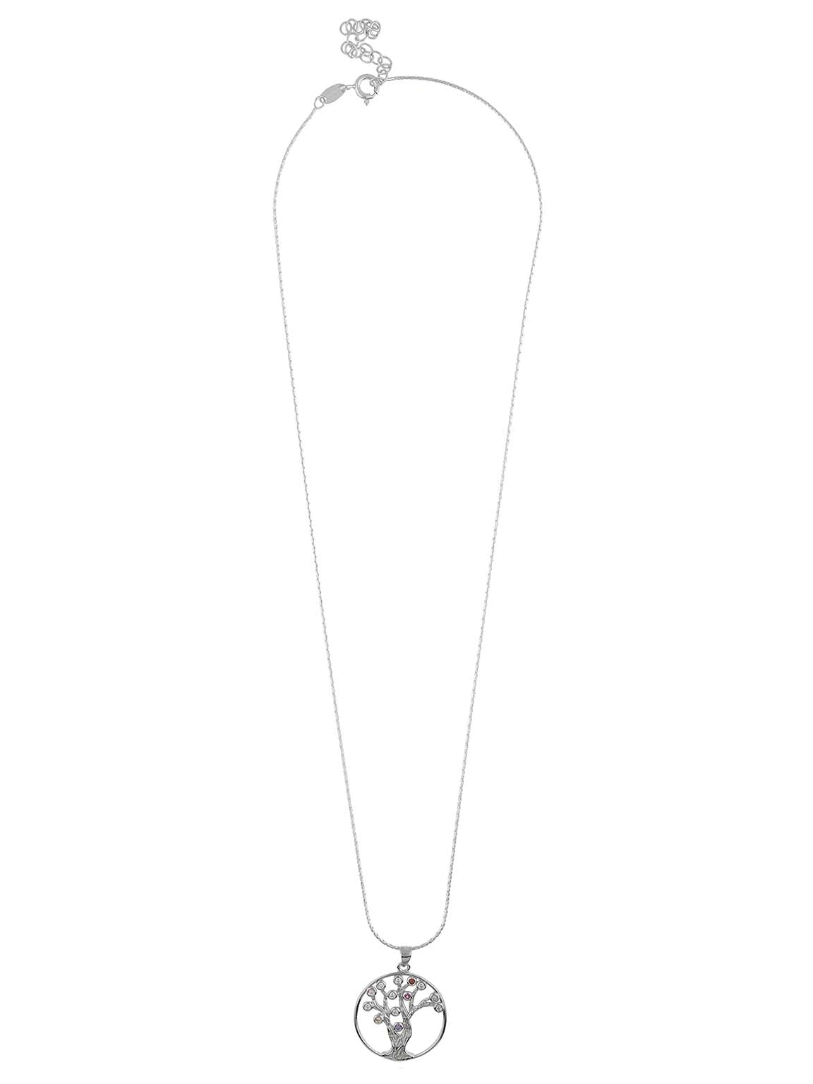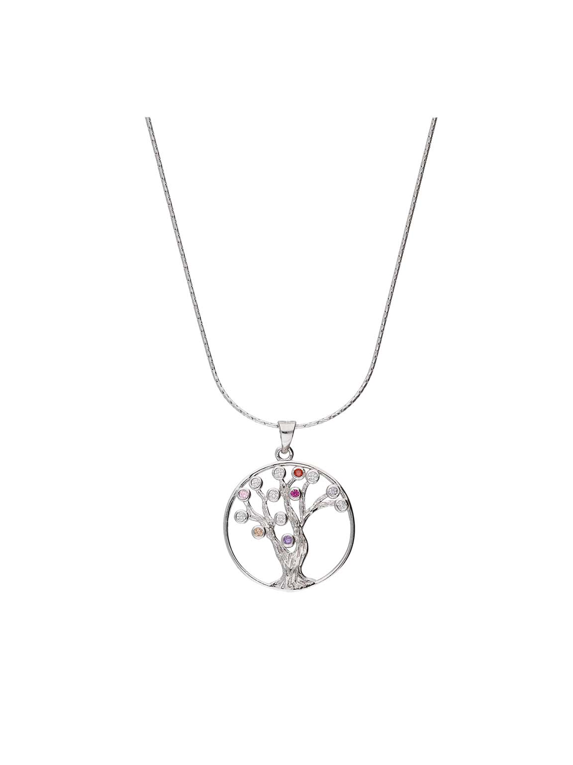 Collar colgante, Plata de Ley 925, Zirconia cúbica artificial, Multicolor, Árbol, Artificial, Color plateado, longitud del colgante: 2.5 cm, ancho colgante: 2.0 cm, 2.59 g
