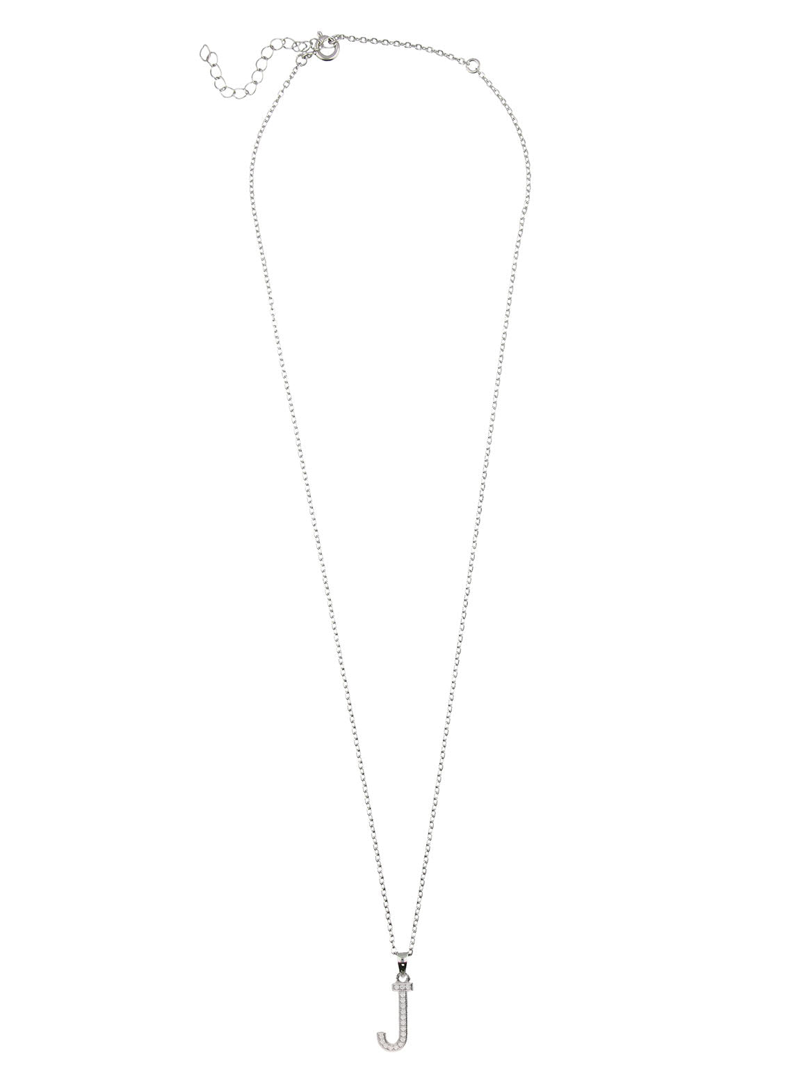 Collar colgante, Plata 925 bañada en rodio, Zirconia cúbica artificial, Claro, Letra, Artificial, Color plateado, longitud del colgante: 2.2 cm, ancho colgante: 0.6 cm, 3.70 g