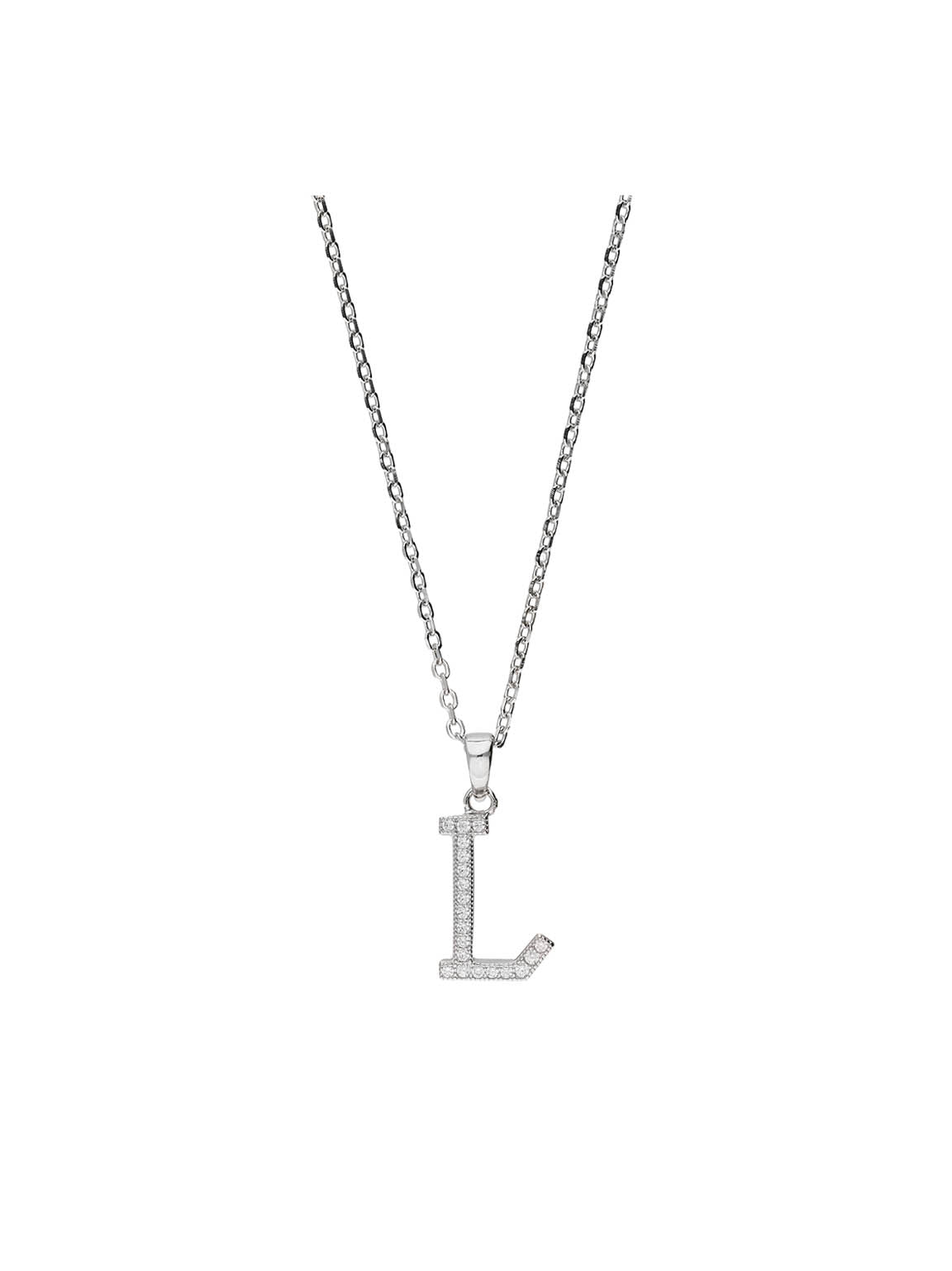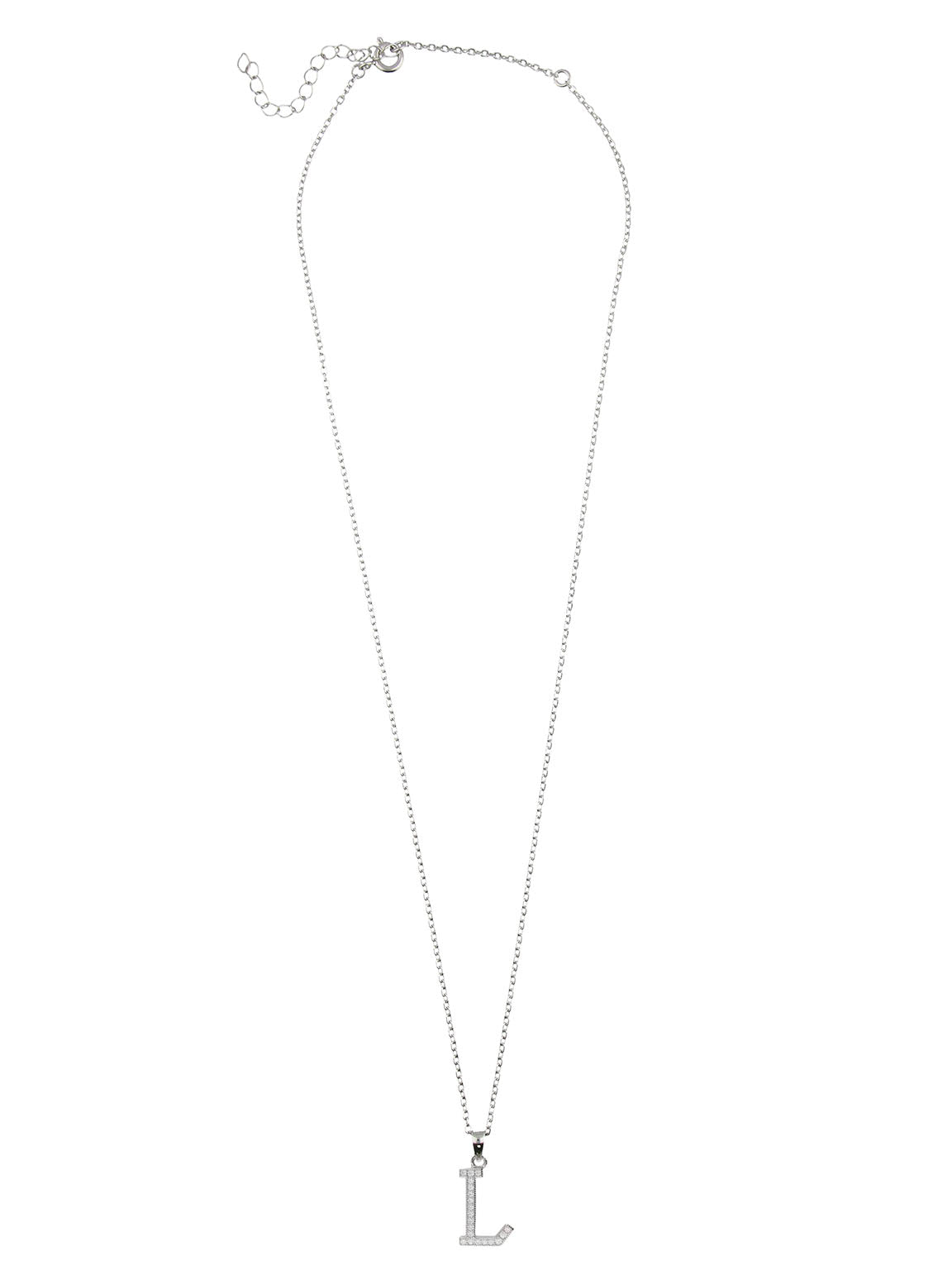 Collar colgante, Plata 925 bañada en rodio, Zirconia cúbica artificial, Claro, Letra, Artificial, Color plateado, longitud del colgante: 2.2 cm, ancho colgante: 1.0 cm, 3.70 g
