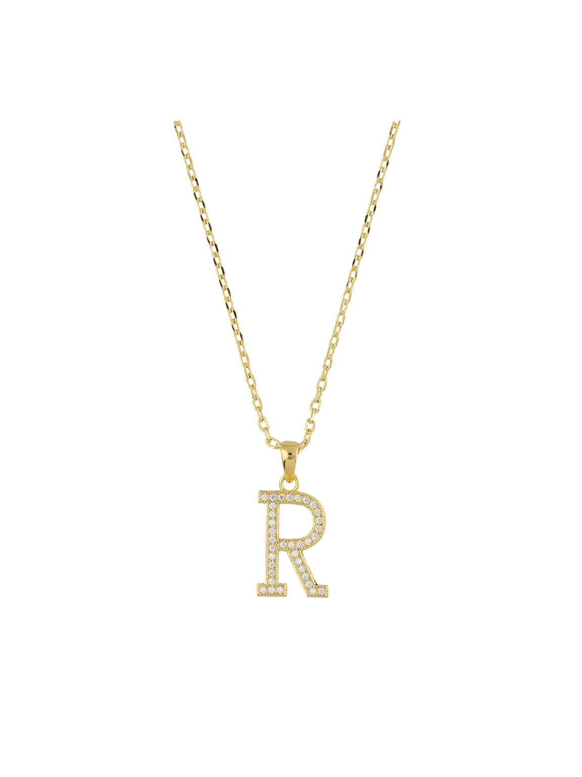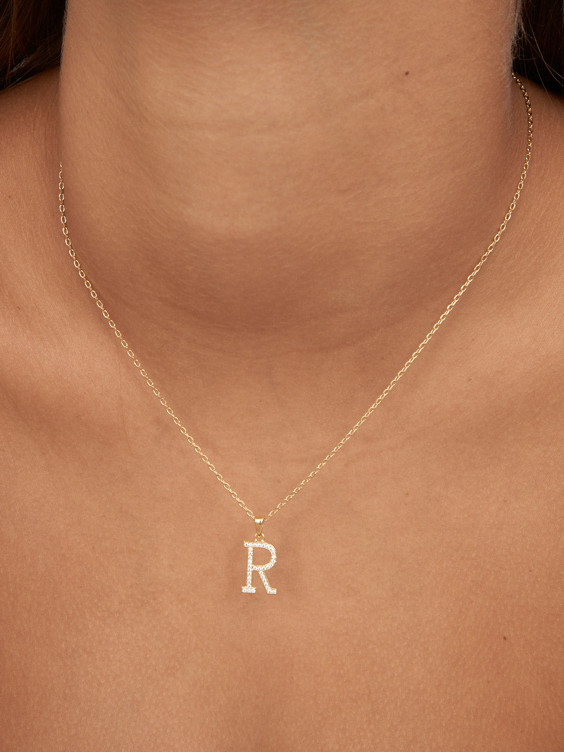 Collar colgante, Bañado en oro, Zirconia cúbica artificial, Claro, Letra, Artificial, Color dorado, longitud del colgante: 2.0 cm, ancho colgante: 0.9 cm, 3.70 g