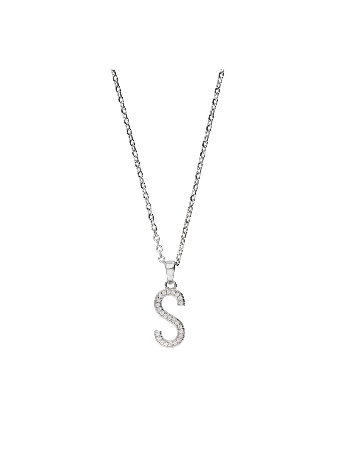 Collar colgante, Plata 925 bañada en rodio, Zirconia cúbica artificial, Claro, Letra, Artificial, Color plateado, longitud del colgante: 2.2 cm, ancho colgante: 0.8 cm, 3.70 g