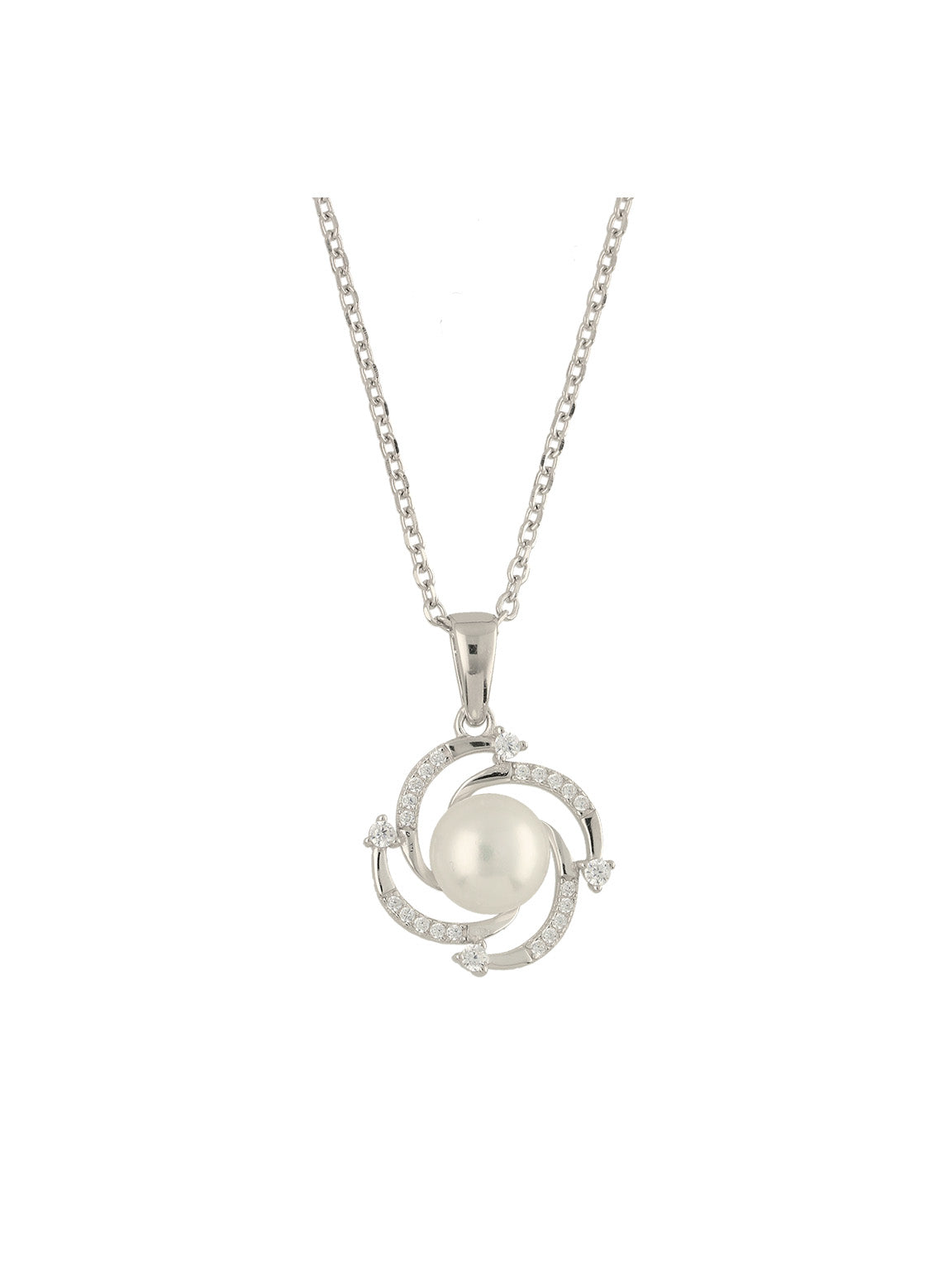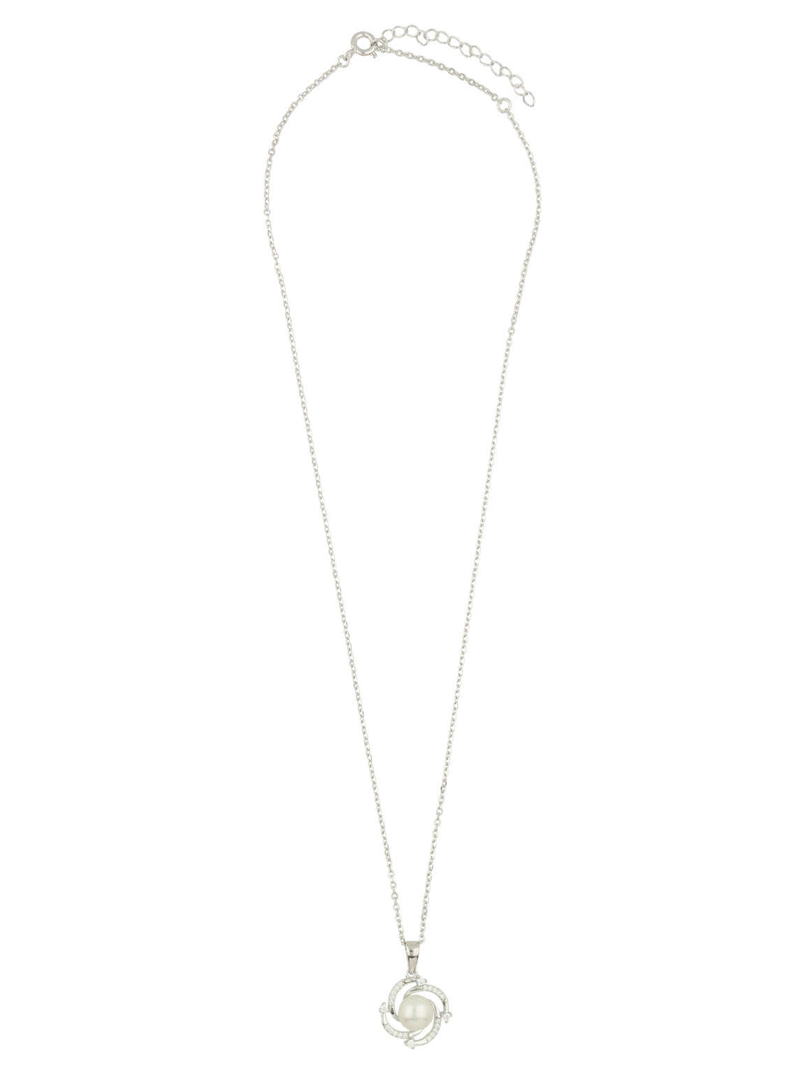 Collar colgante, Plata 925 bañada en rodio, Zirconia cúbica artificial, Perla cultivada