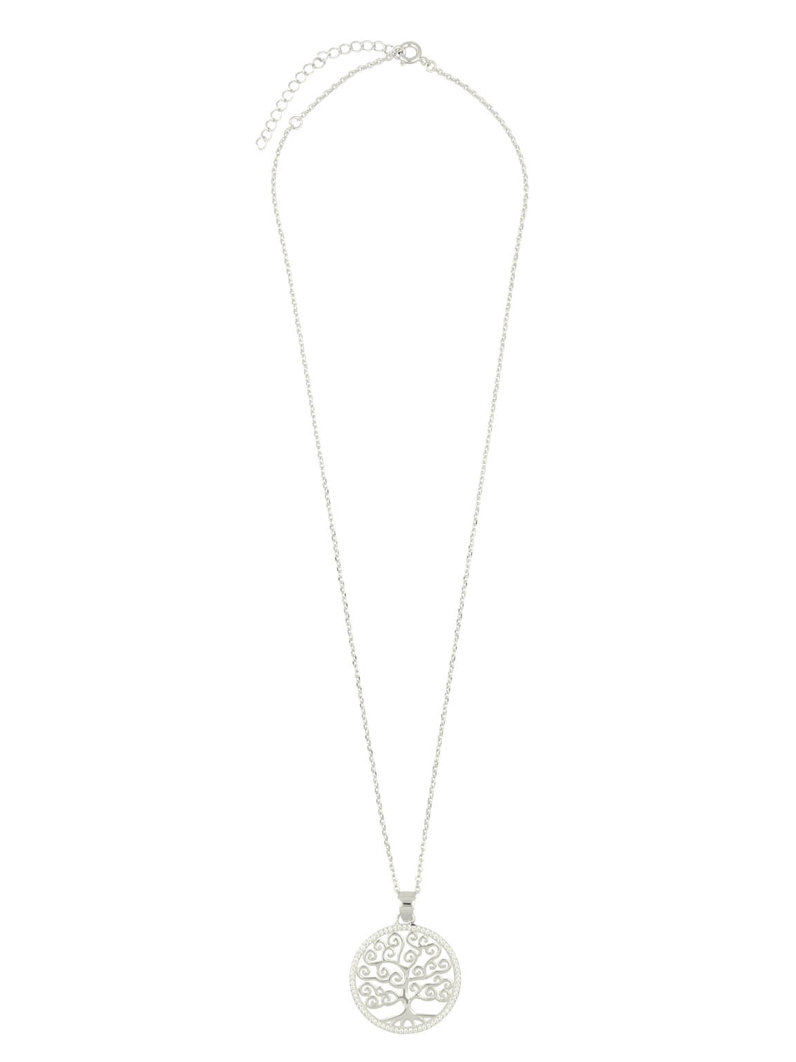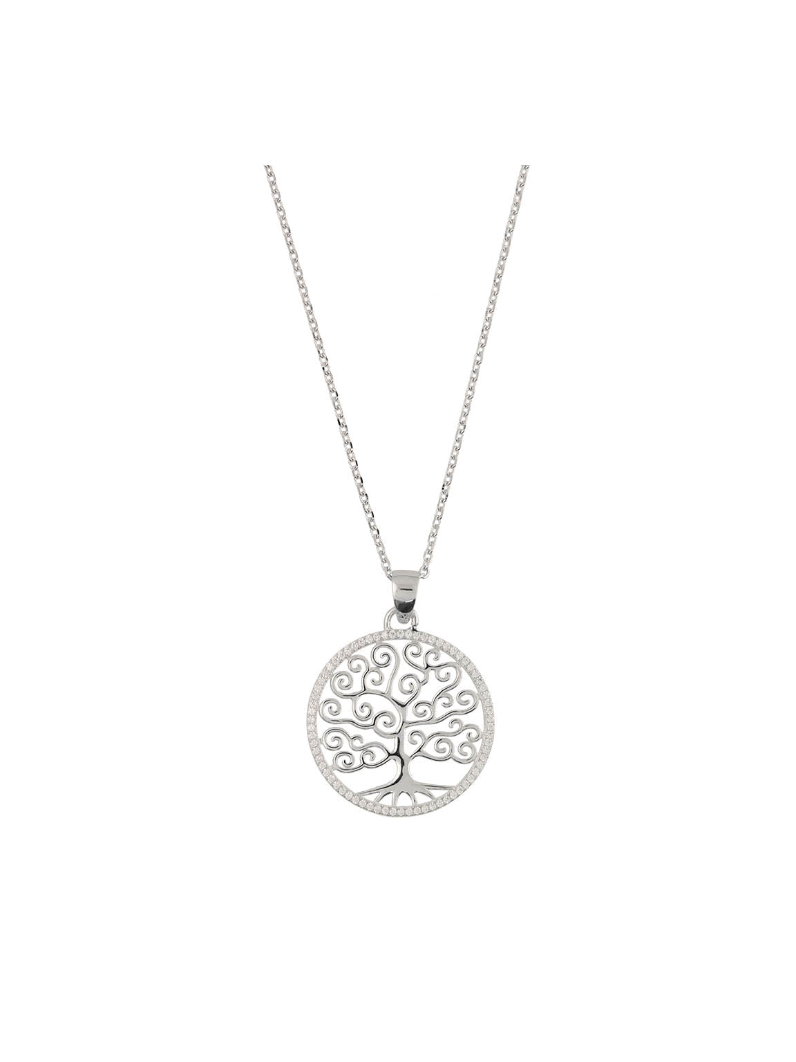 Collar colgante, Plata 925 bañada en rodio, Zirconia cúbica artificial, Claro, Árbol, Artificial, Color plateado, 4.87 g