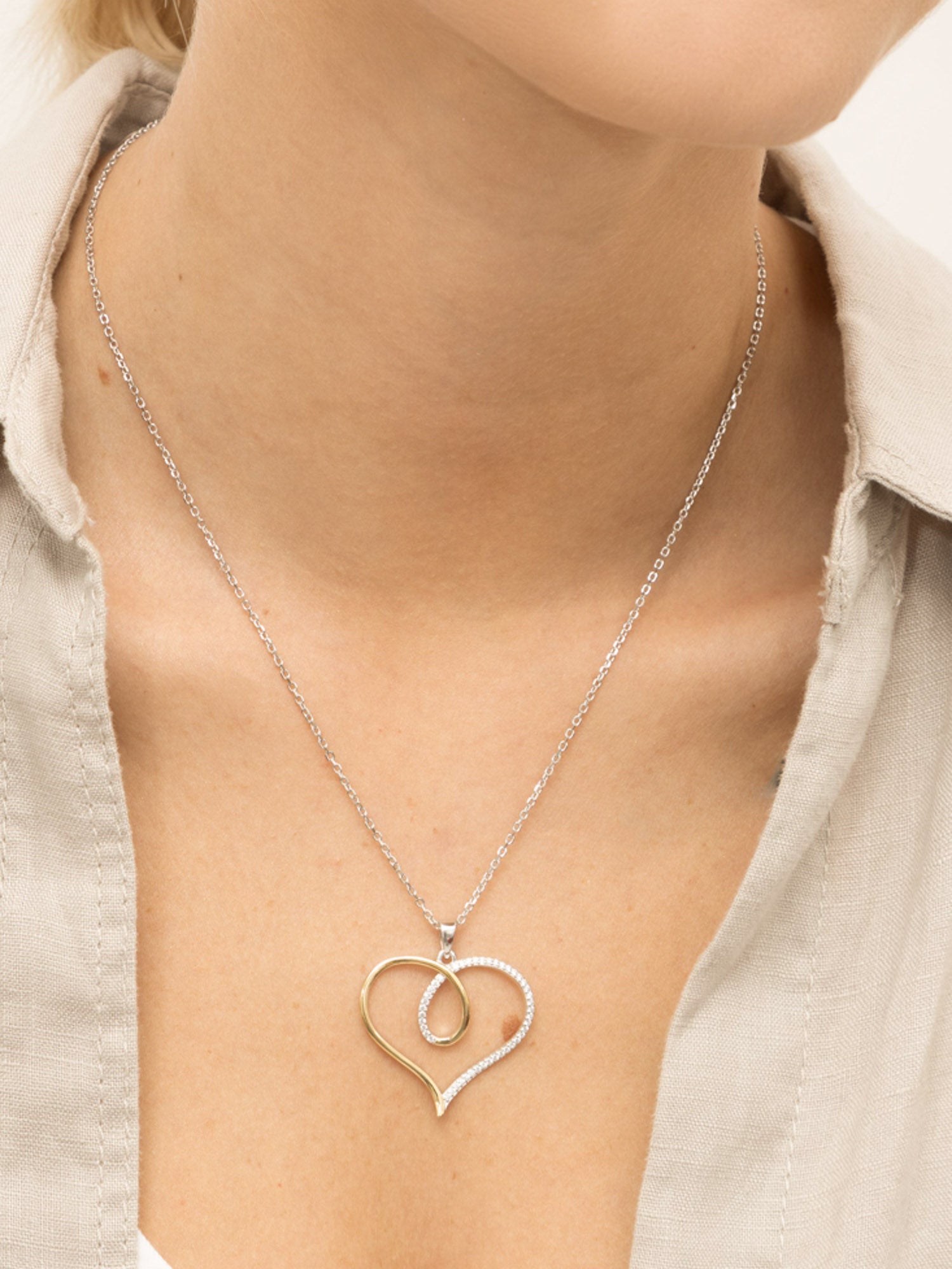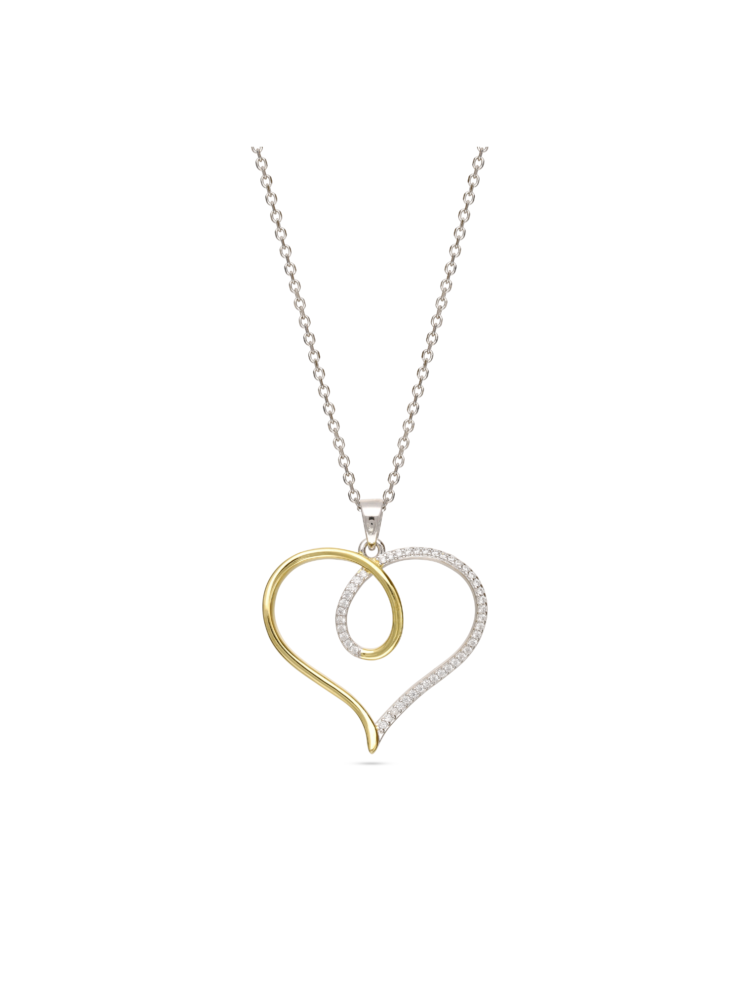 Collar colgante, Plata 925 y bañado en oro, Zirconia cúbica artificial, Claro, Corazón, Artificial, DOS TONOS, longitud del colgante: 3.4 cm, ancho colgante: 3.1 cm, 4.90 g