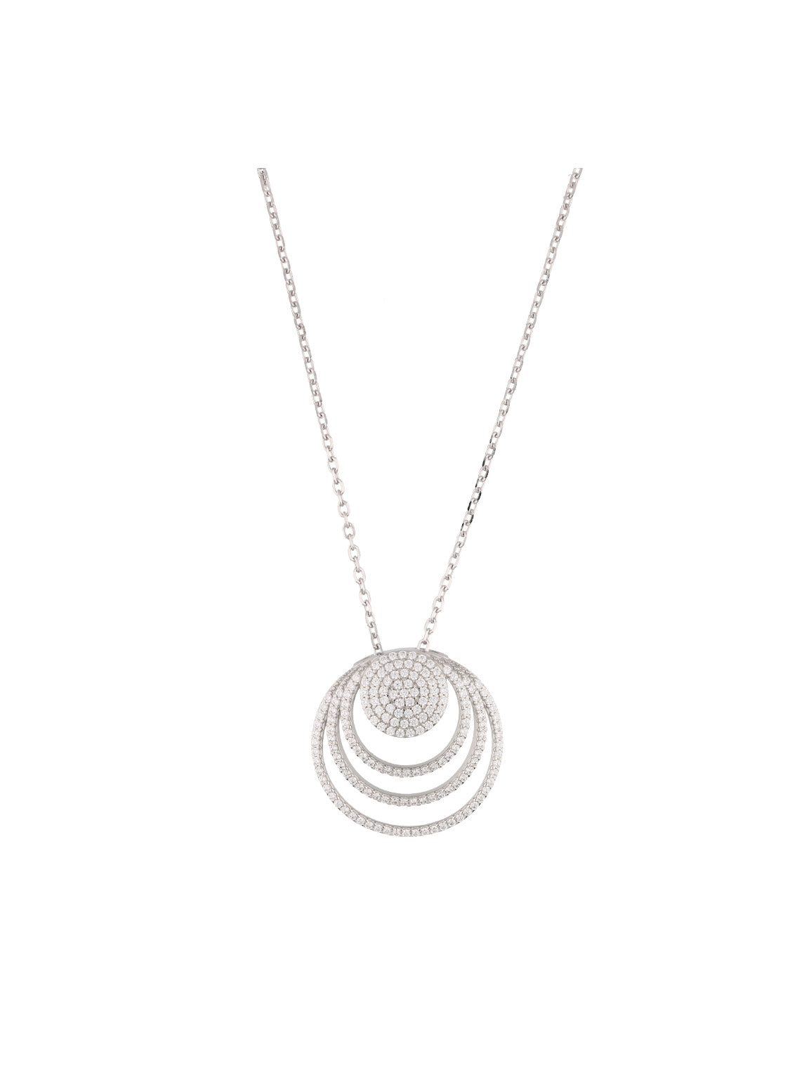 Collar colgante, Plata 925 bañada en rodio, Zirconia cúbica artificial, Claro, Círculo, Artificial, Color plateado, longitud del colgante: 2.3 cm, ancho colgante: 2.3 cm, 5.50 g