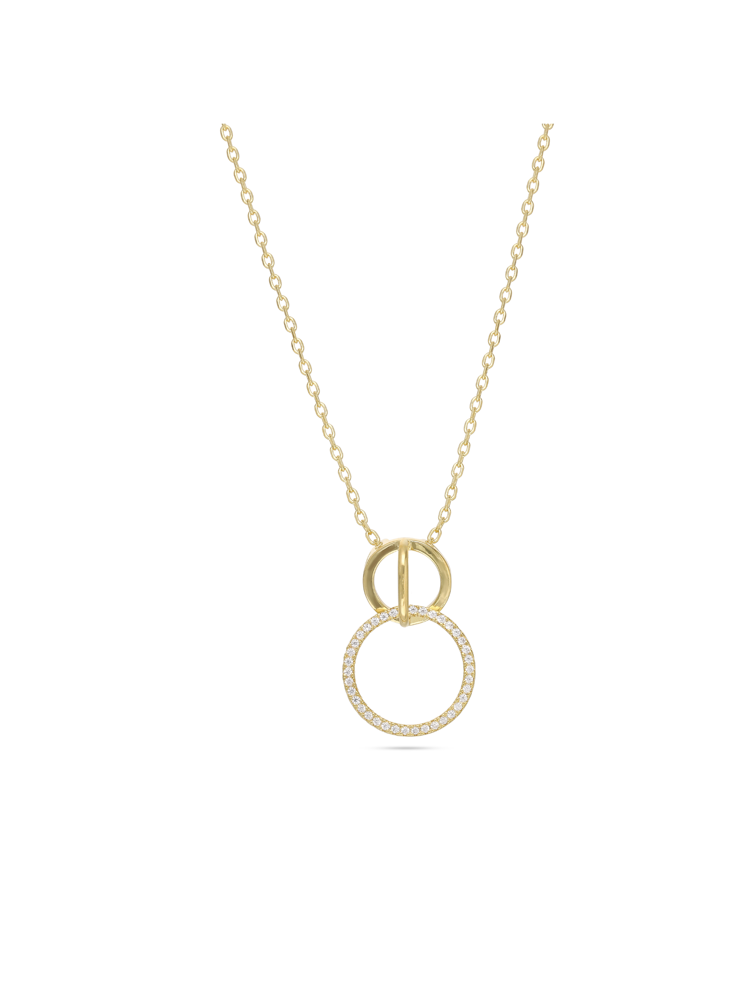 Collar colgante, Bañado en oro, Zirconia cúbica artificial, Claro, Círculo, Artificial, Color dorado, longitud del colgante: 2.6 cm, ancho colgante: 1.8 cm, 3.84 g