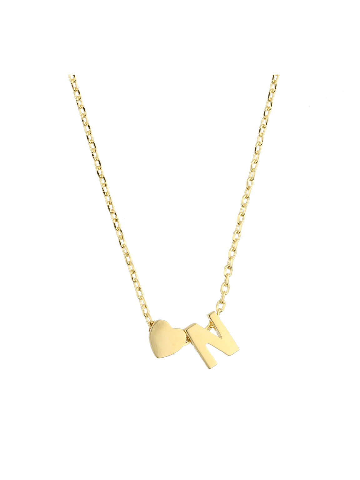 Collar colgante, Bañado en oro, Sin piedra, Sin color, Corazón, Letra, Color dorado, longitud del colgante: 0.6 cm, ancho colgante: 0.6 cm, 2.72 g