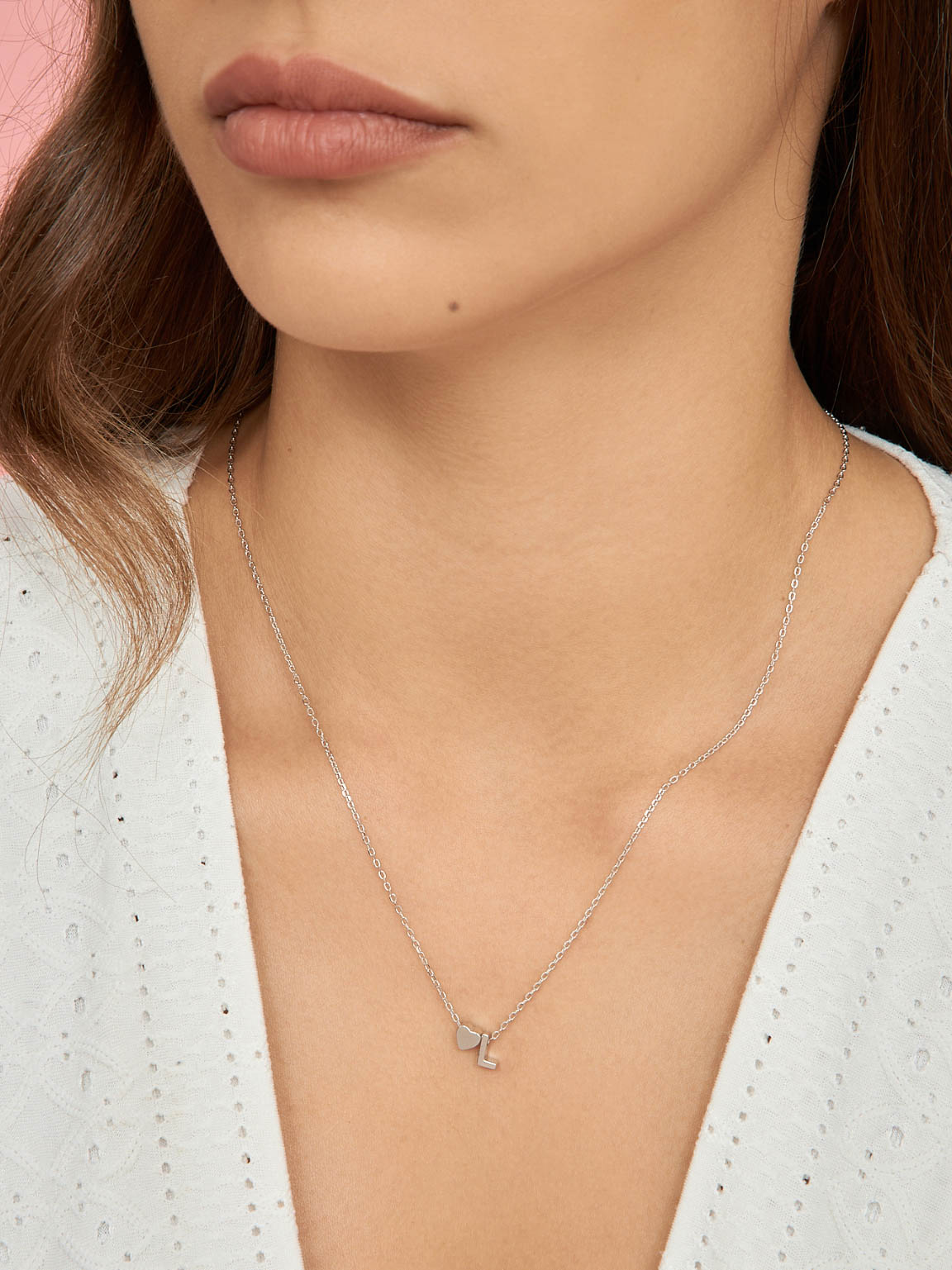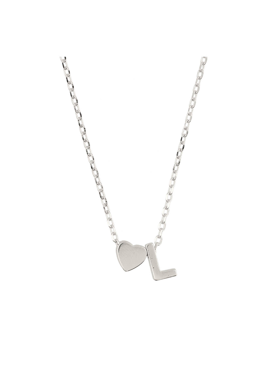 Collar colgante, Plata 925 bañada en rodio, Sin piedra, Sin color, Corazón, Letra, Color plateado, longitud del colgante: 0.7 cm, ancho colgante: 0.4 cm, 2.77 g