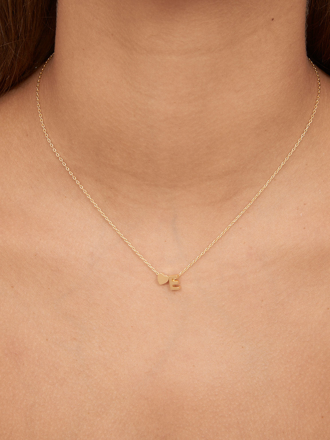 Collar colgante, Bañado en oro, Sin piedra, Sin color, Corazón, Letra, Color dorado, longitud del colgante: 0.6 cm, ancho colgante: 0.4 cm, 2.61 g
