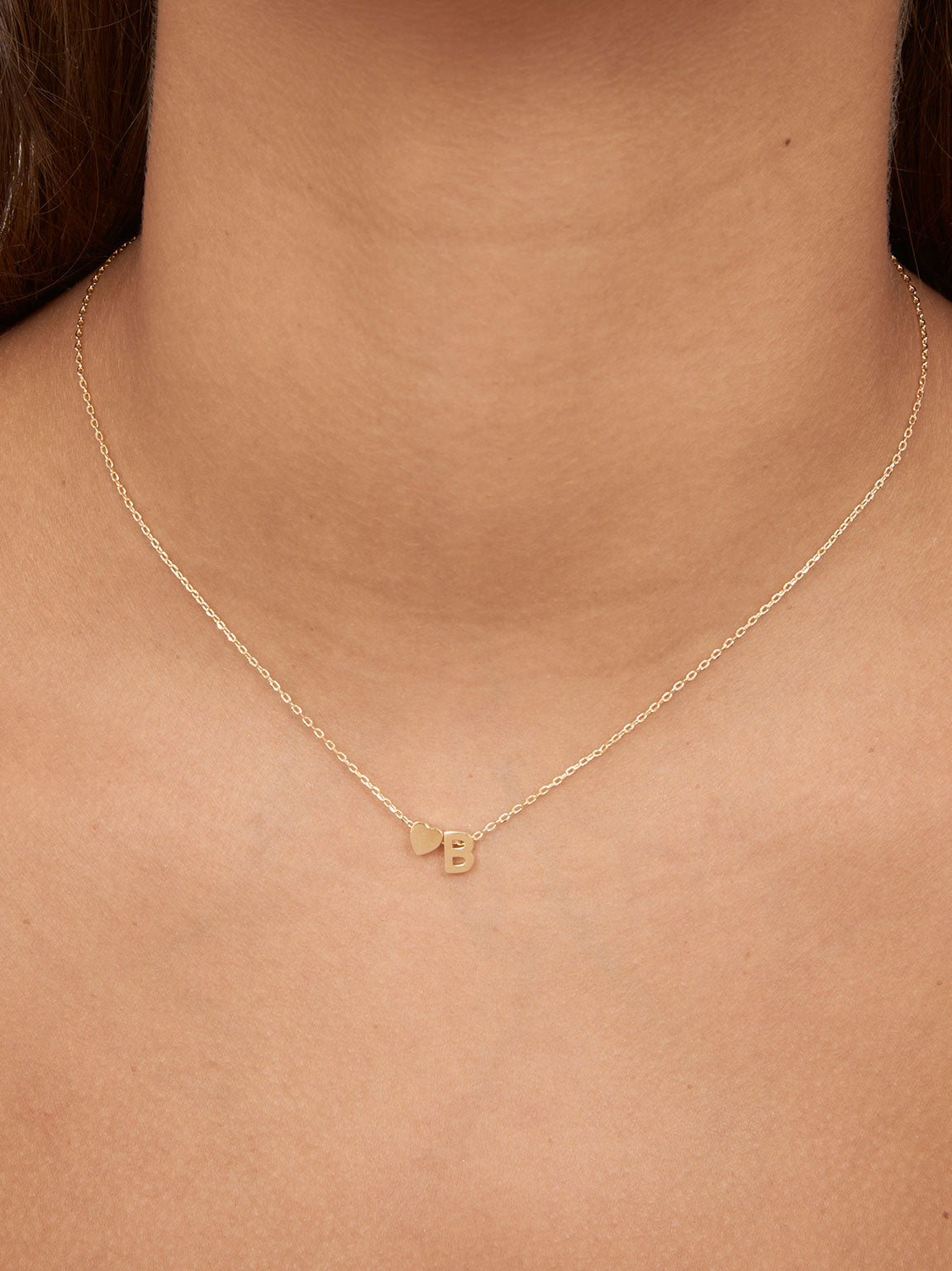 Collar colgante, Bañado en oro, Sin piedra, Sin color, Corazón, Letra, Color dorado, longitud del colgante: 0.6 cm, ancho colgante: 0.5 cm, 2.65 g