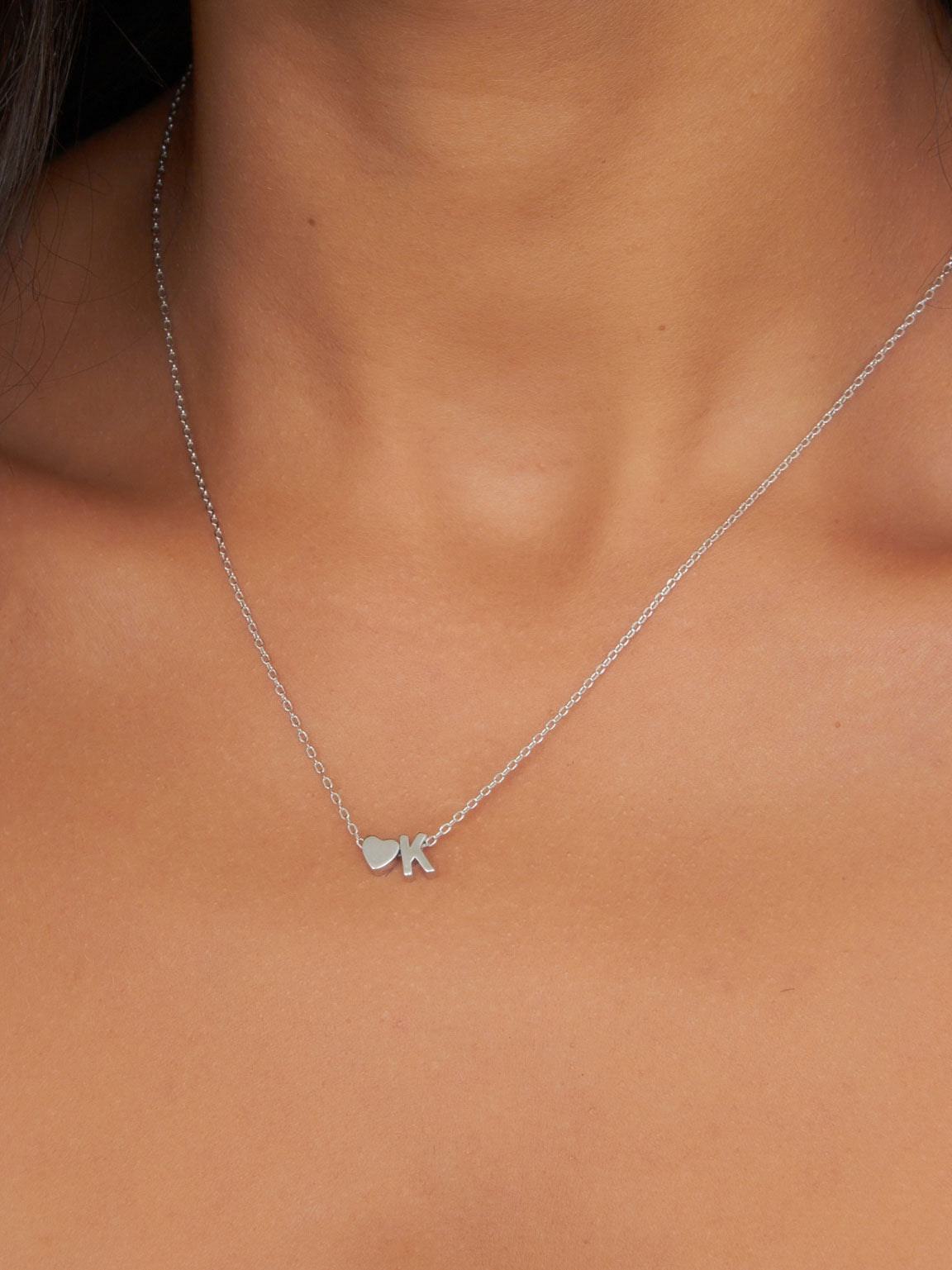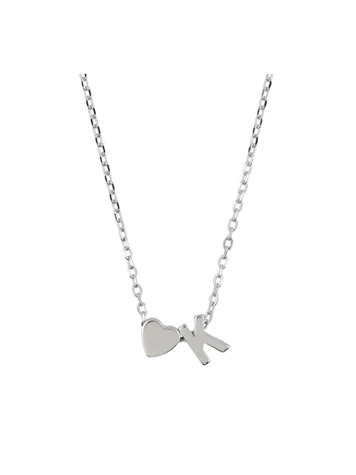 Collar colgante, Plata 925 bañada en rodio, Sin piedra, Sin color, Corazón, Letra, Color plateado, longitud del colgante: 0.7 cm, ancho colgante: 0.5 cm, 2.81 g