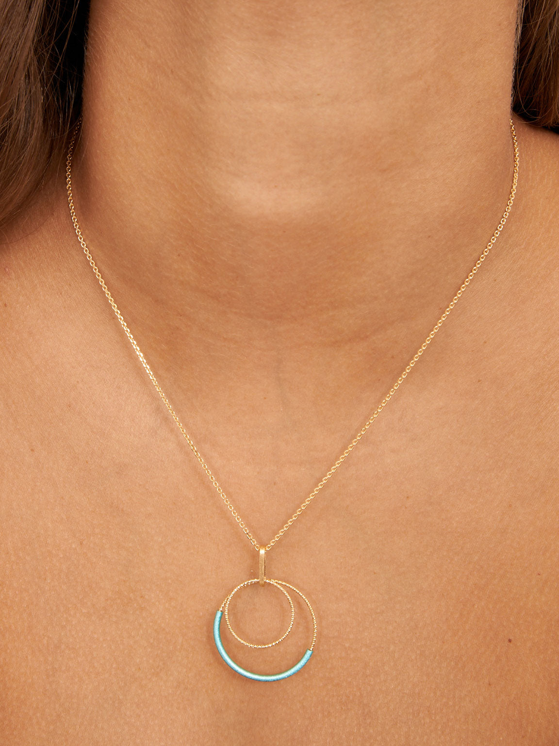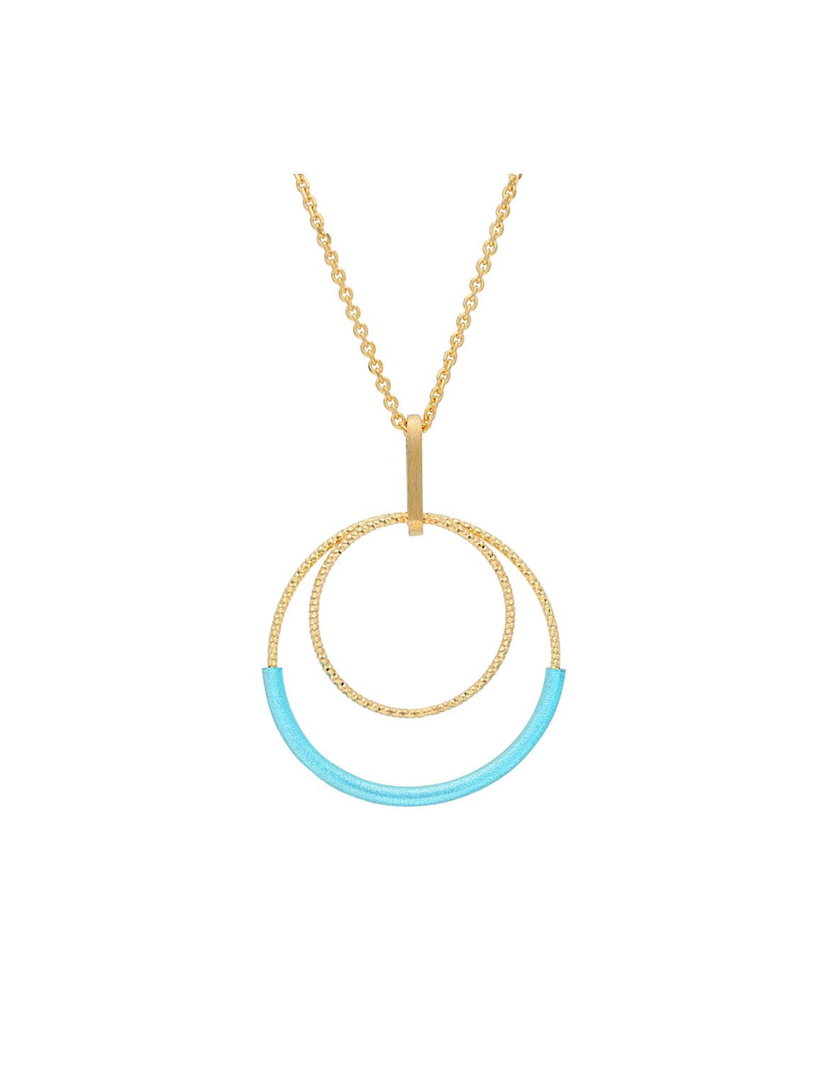 Collar colgante, Bañado en oro, Sin piedra, Celeste, Círculo, Color dorado, longitud del colgante: 3.8 cm, ancho colgante: 2.9 cm, 4.52 g
