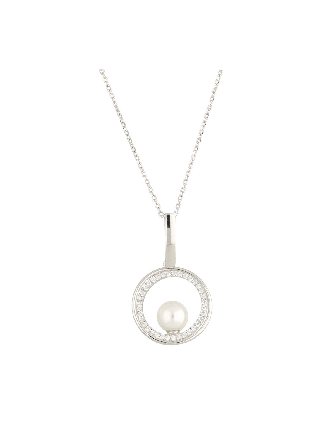 Collar colgante, Plata 925 bañada en rodio, Zirconia cúbica artificial, Perla sintética
