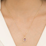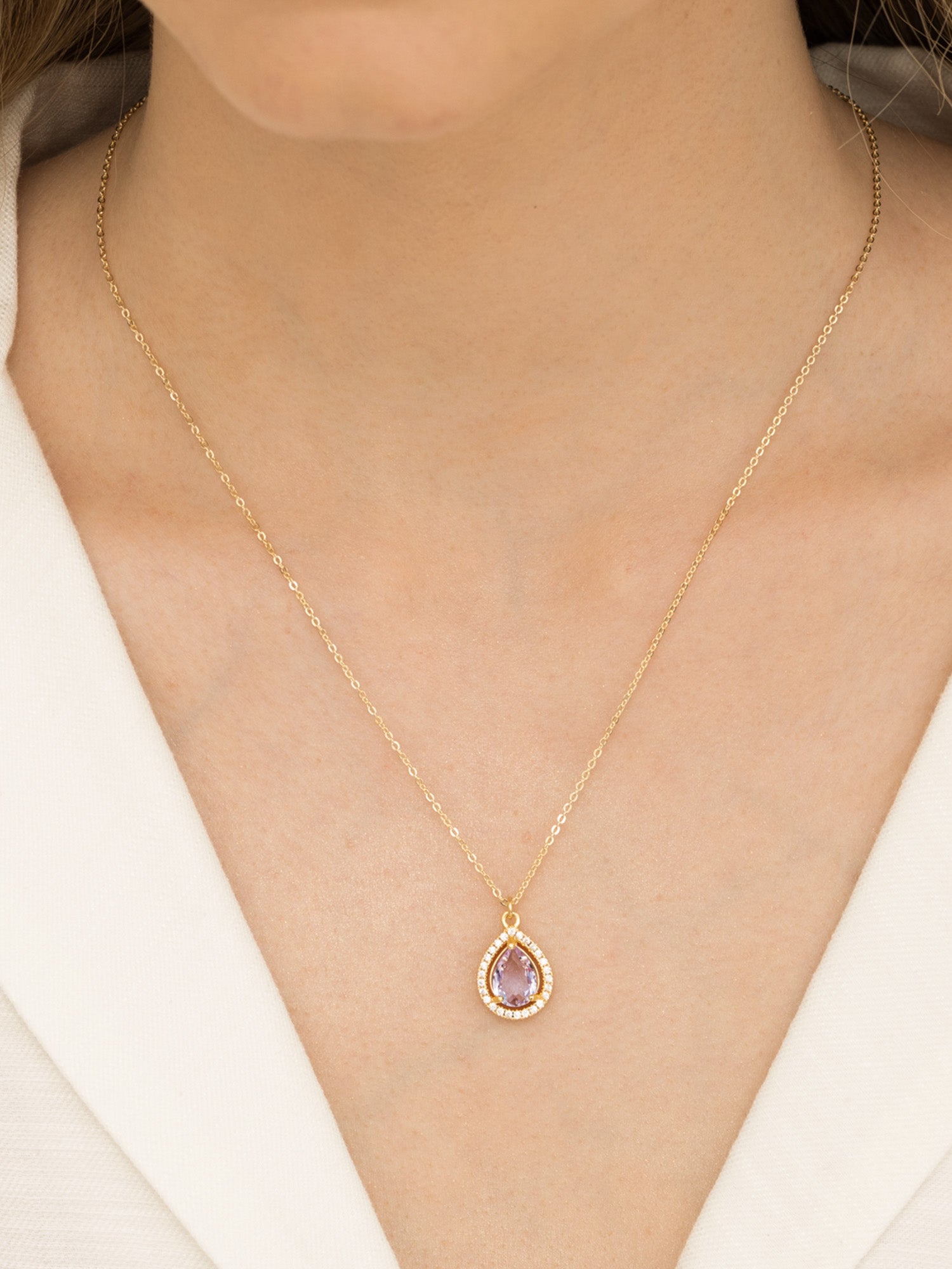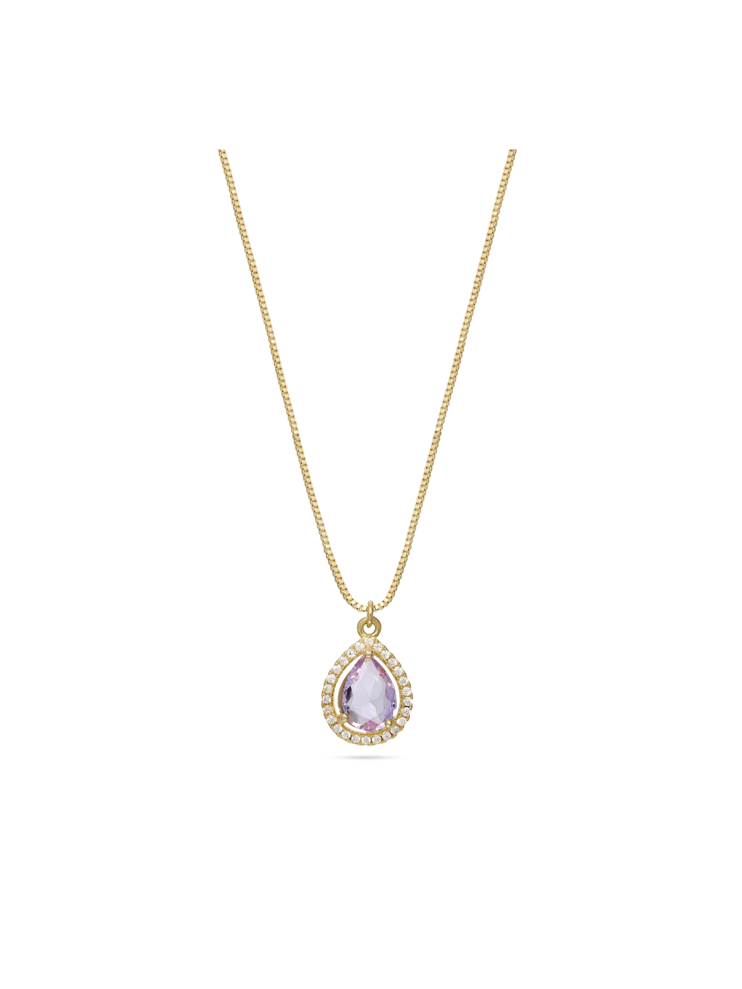 Collar colgante, Bañado en oro, Zirconia cúbica artificial, Vidrio de plomo, Violeta, Claro, Lágrima, Artificial, Color dorado, longitud del colgante: 1.6 cm, ancho colgante: 1.1 cm, 3.40 g