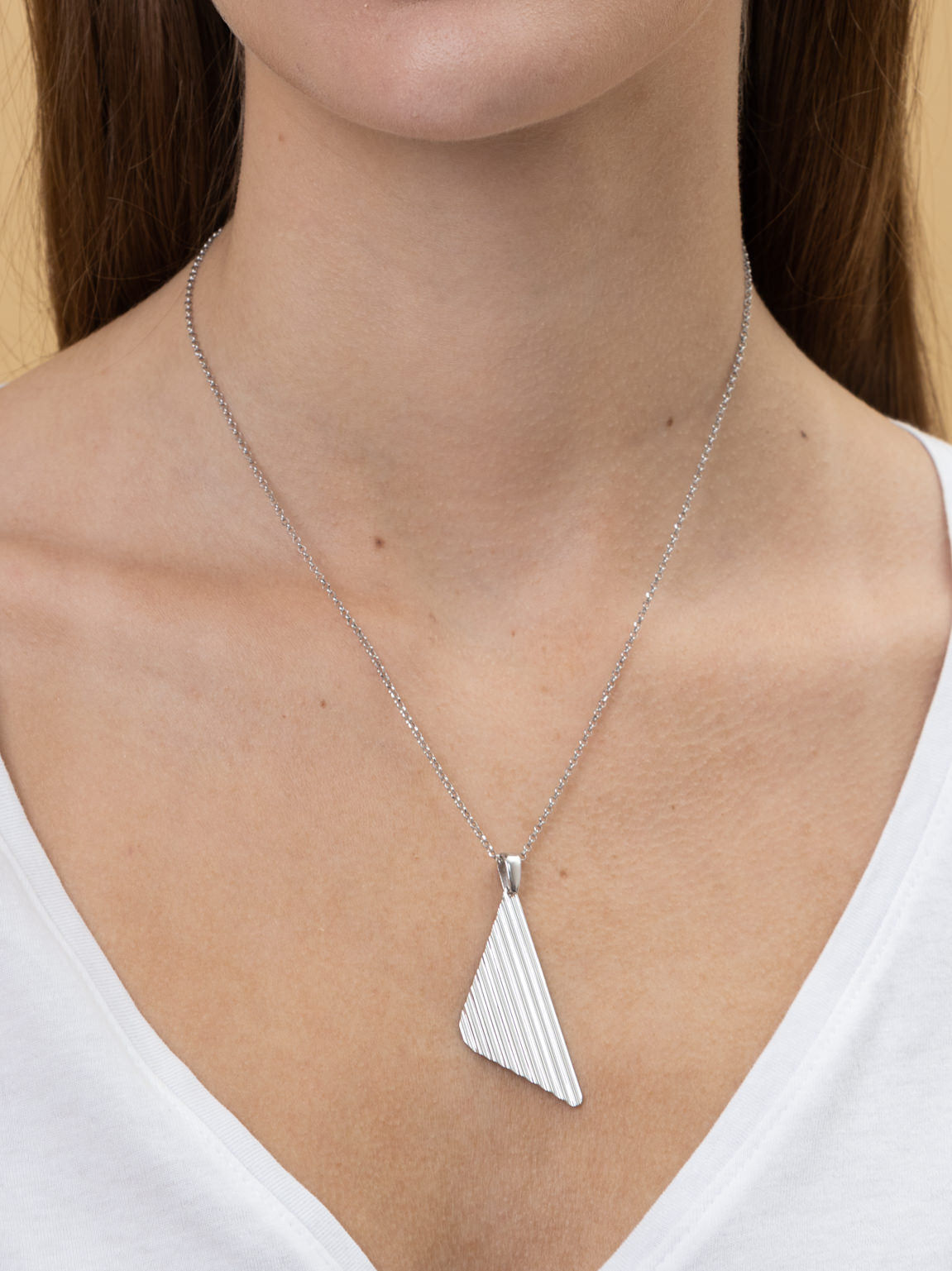 Collar colgante, Plata 925 bañada en rodio, Sin piedra, Sin color, Triángulo, Color plateado, longitud del colgante: 5.1 cm, ancho colgante: 2.0 cm, 5.75 g