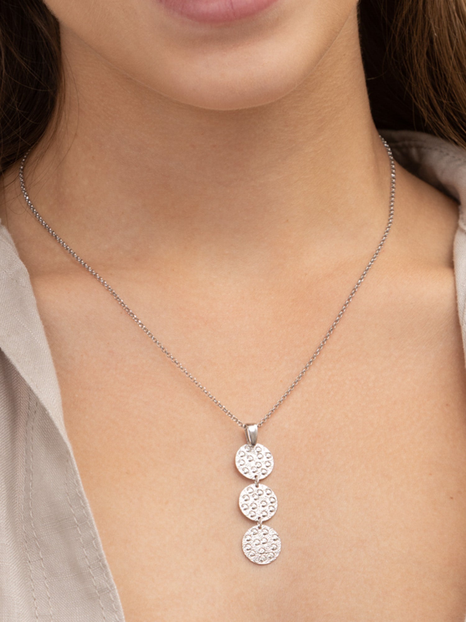 Collar colgante, Plata 925 bañada en rodio, Sin piedra, Sin color, Círculo, Color plateado, ancho colgante: 1.3 cm, longitud del colgante: 4.7 cm, 5.40 g