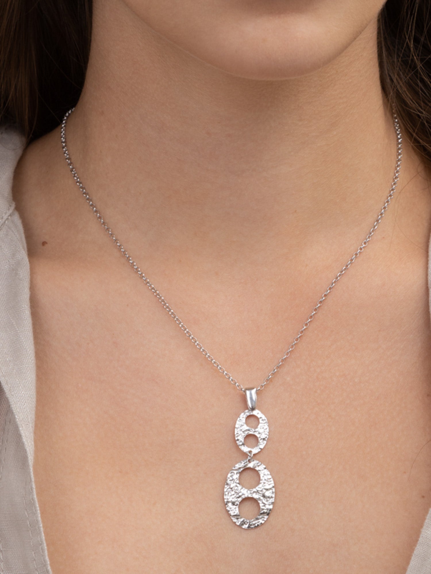 Collar colgante, Plata 925 bañada en rodio, Sin piedra, Sin color, Círculo, Color plateado, ancho colgante: 1.7 cm, longitud del colgante: 4.9 cm, 5.06 g