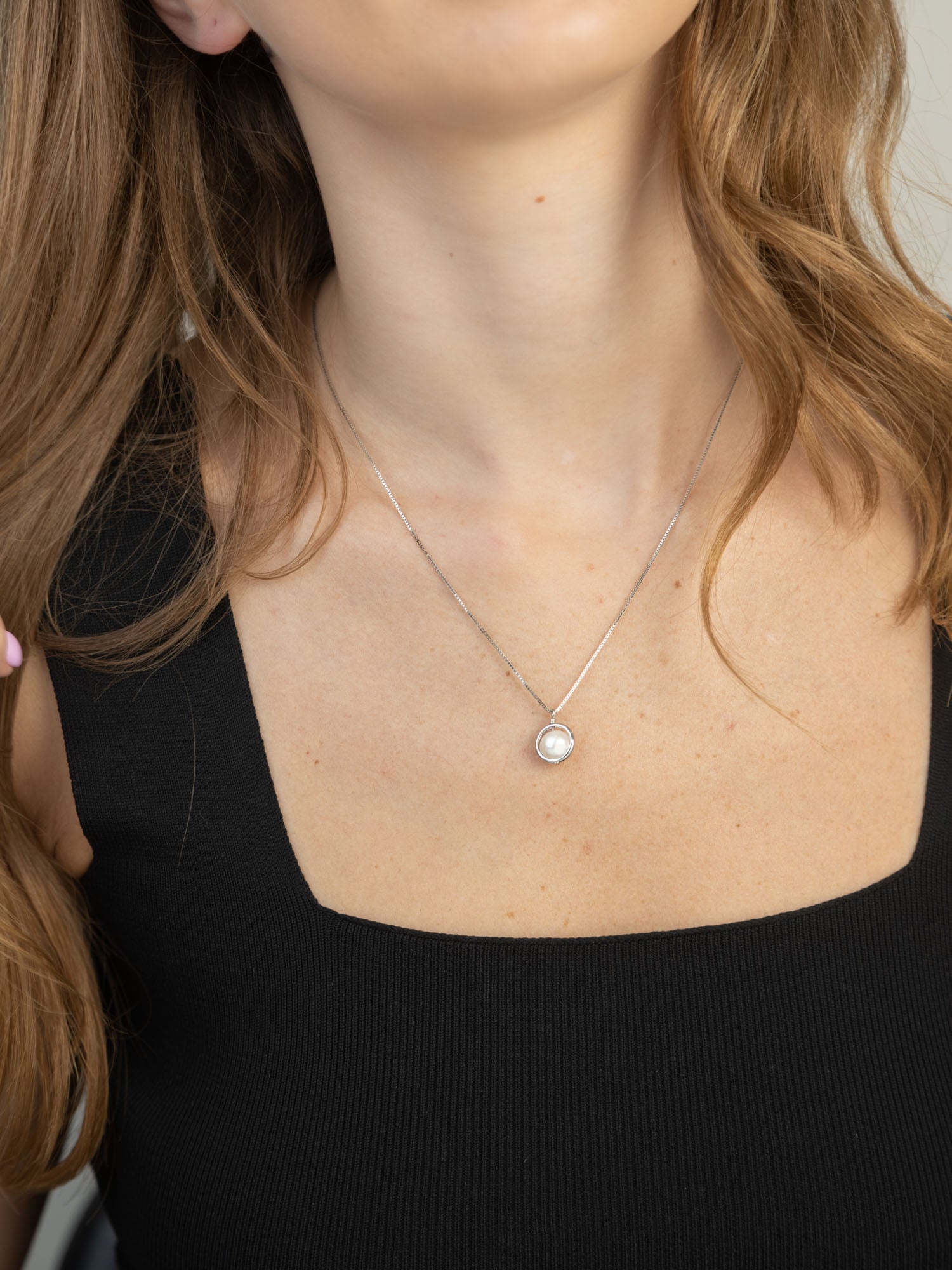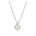 Collar colgante, Plata 925 bañada en rodio, Perla cultivada, Blanco, Círculo, Color plateado, longitud del colgante: 1.3 cm, ancho colgante: 1.0 cm, 3.27 g
