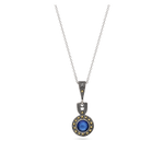 Collar colgante, Plata 925 bañada en rodio, Zirconia cúbica artificial, Marcasita artificial, Gris, Azul, Círculo, Artificial, Color plateado, longitud del colgante: 3.0 cm, ancho colgante: 1.2 cm, 3.30 g