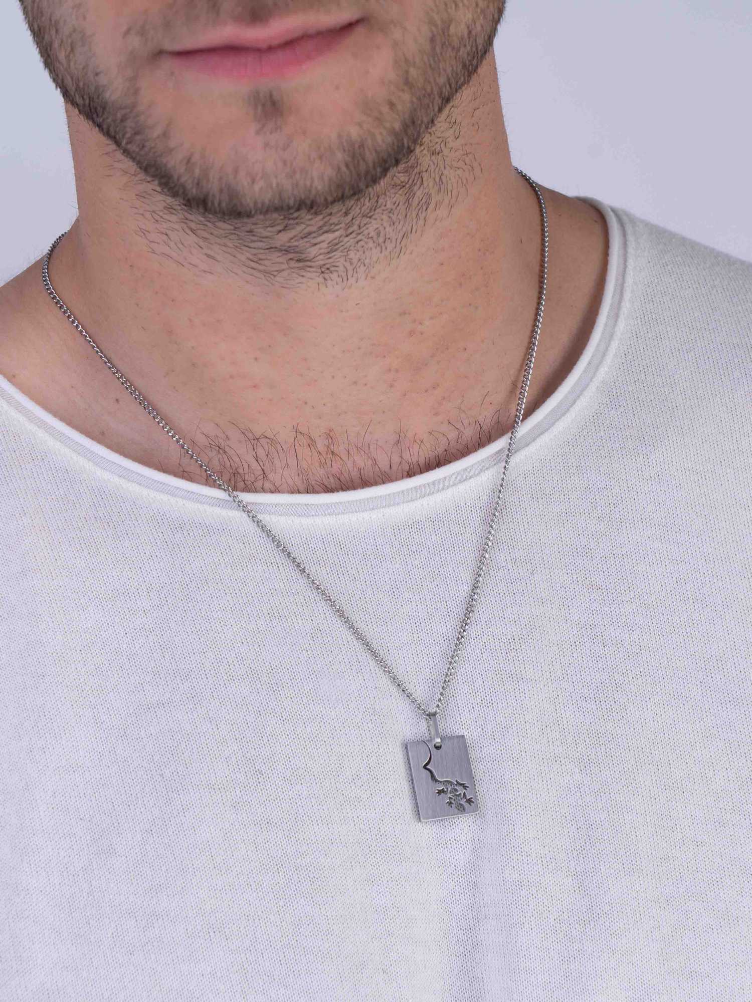 Collar colgante, Acero inoxidable, Sin piedra, Sin color, Animal, Cuadrado, Color plateado, longitud del colgante: 3.0 cm, ancho colgante: 1.7 cm, 12.25 g