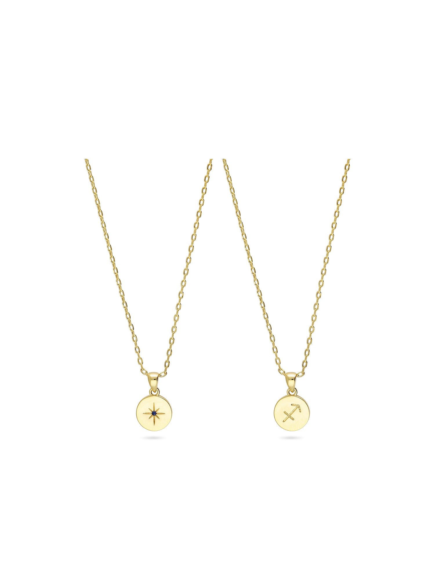 Collar colgante, Bañado en oro, Zirconia cúbica artificial, Azul, Signo del zodíaco, Artificial, Color dorado, longitud del colgante: 1.5 cm, ancho colgante: 1.0 cm, 2.90 g