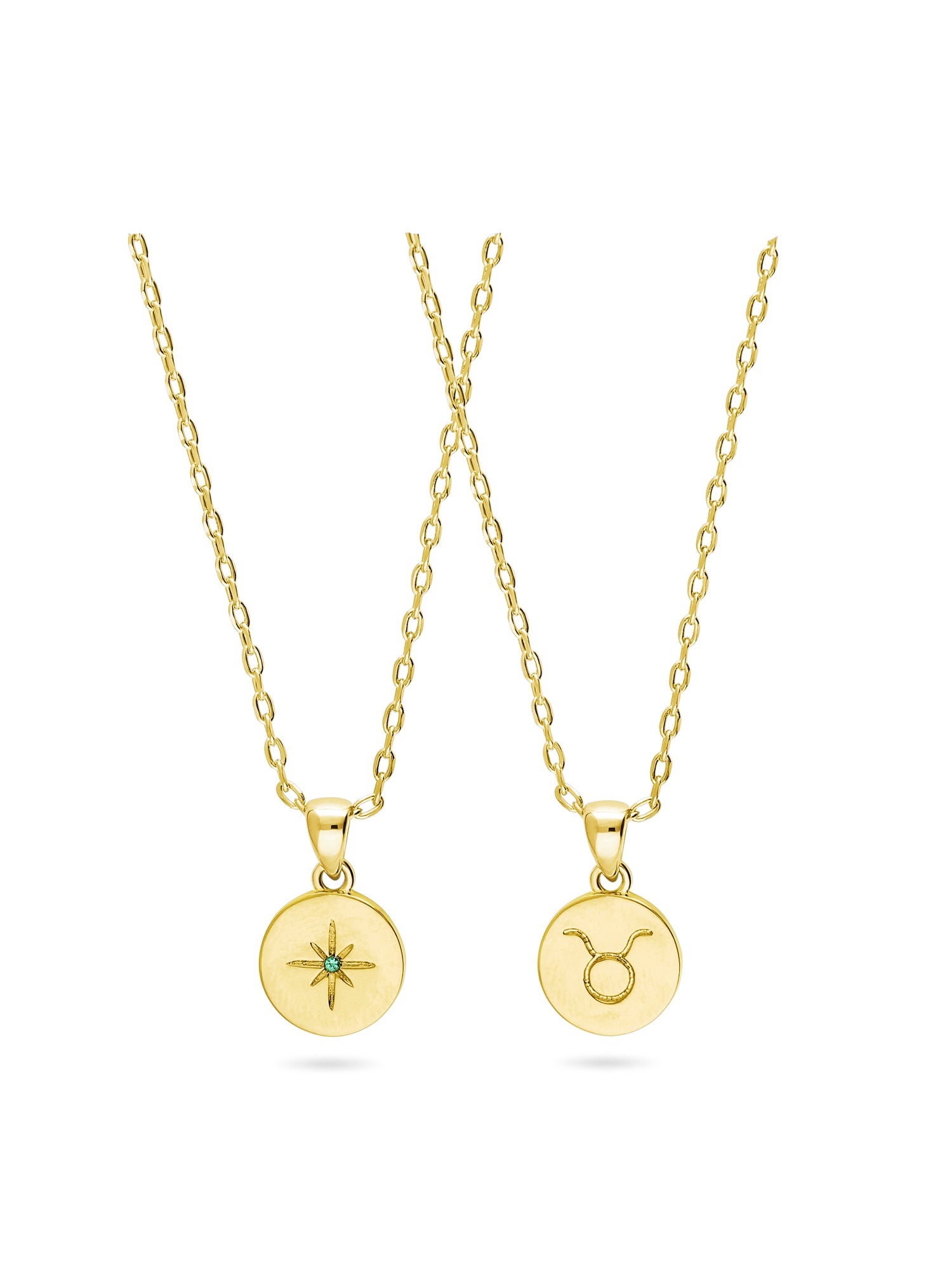 Collar colgante, Bañado en oro, Zirconia cúbica artificial, Verde oscuro, Signo del zodíaco, Artificial, Color dorado, longitud del colgante: 1.5 cm, ancho colgante: 1.0 cm, 2.90 g