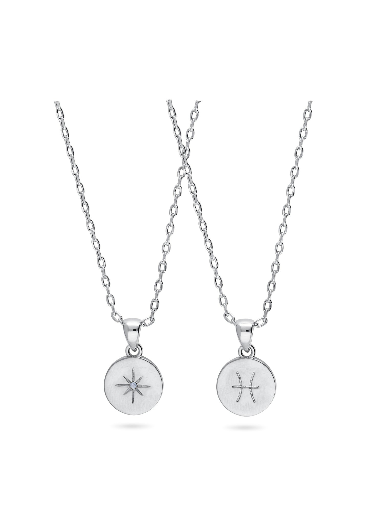 Collar colgante, Plata 925 bañada en rodio, Zirconia cúbica artificial, Celeste, Signo del zodíaco, Artificial, Color plateado, ancho colgante: 1.0 cm, longitud del colgante: 1.5 cm, 2.90 g