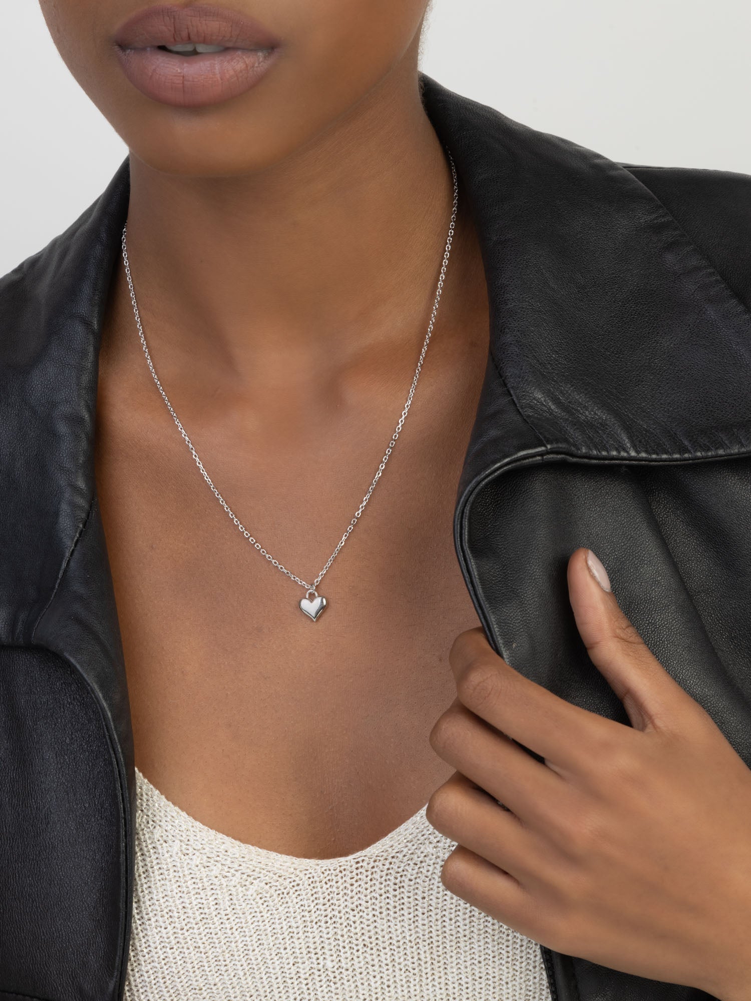 Collar colgante, Plata 925 bañada en rodio, Sin piedra, Sin color, Corazón, Color plateado, ancho colgante: 0.9 cm, longitud del colgante: 1.0 cm, 2.92 g