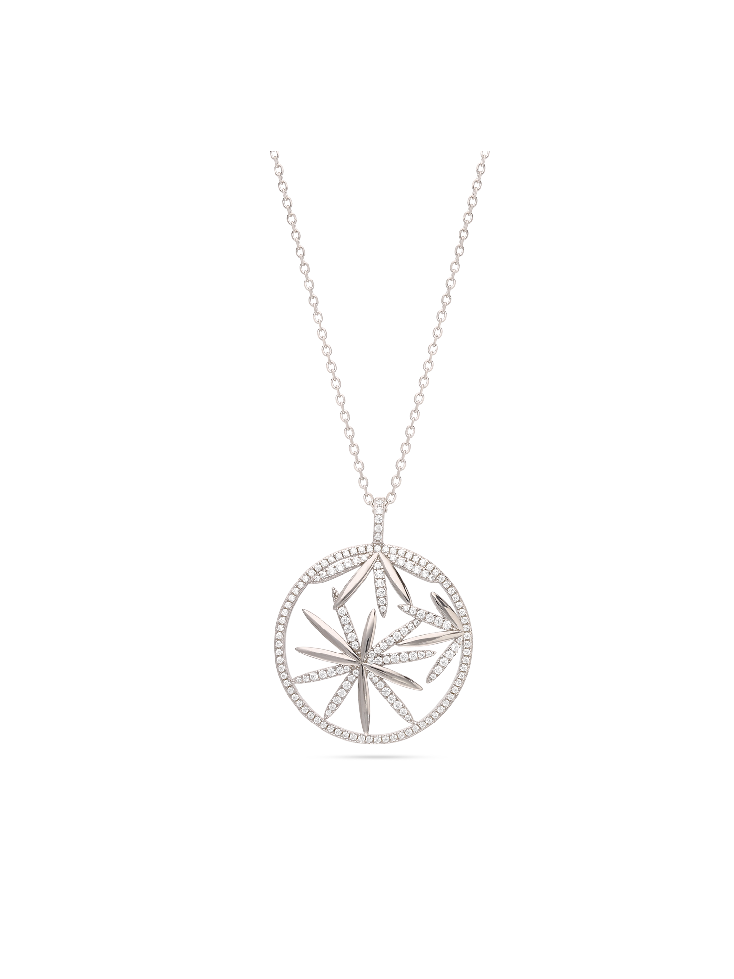 Collar colgante, Plata 925 bañada en rodio, Zirconia cúbica artificial, Claro, Flor, Artificial, Color plateado, longitud del colgante: 3.8 cm, ancho colgante: 3.0 cm, 8.21 g