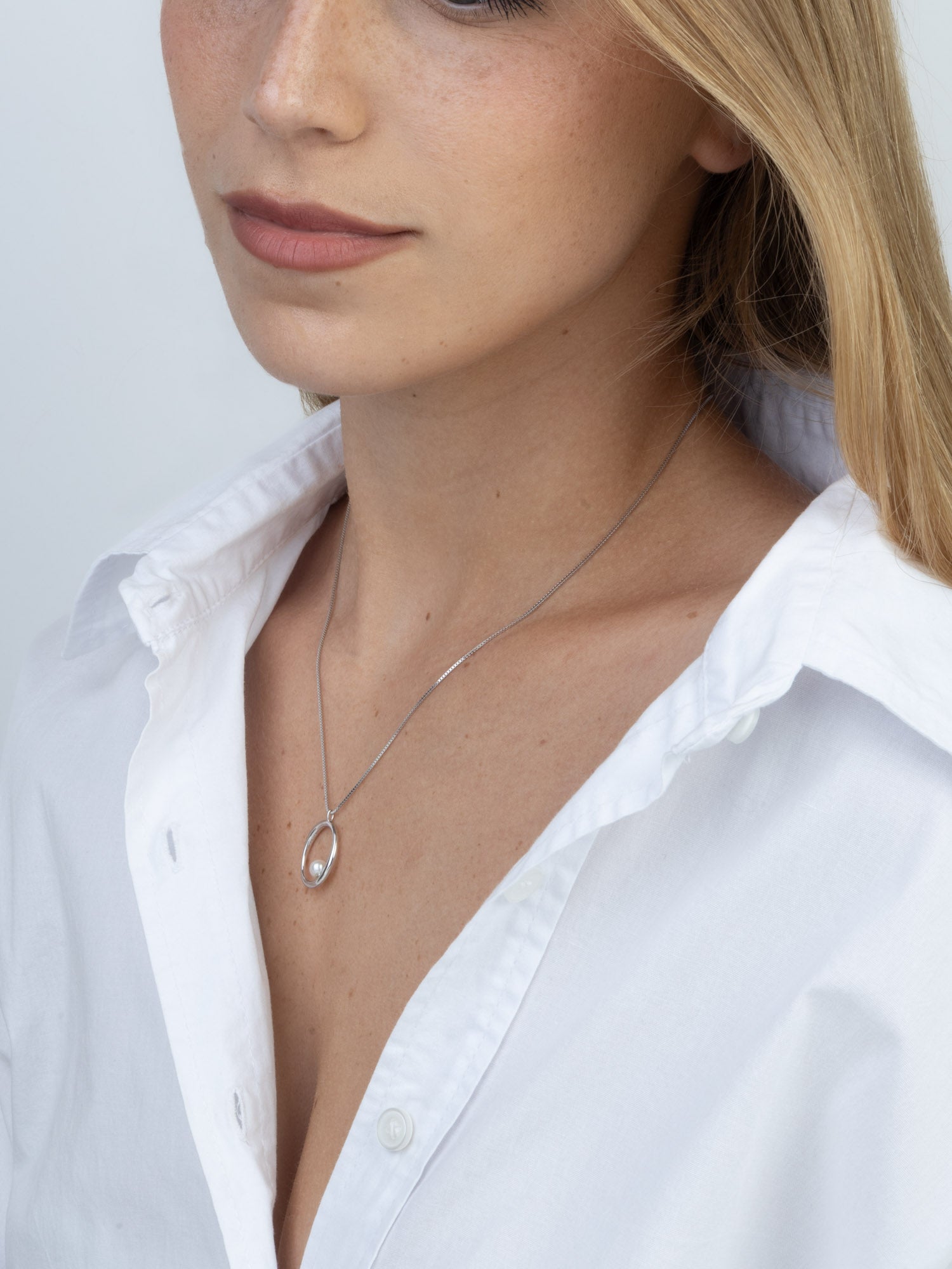 Collar colgante, Plata 925 bañada en rodio, Perla cultivada