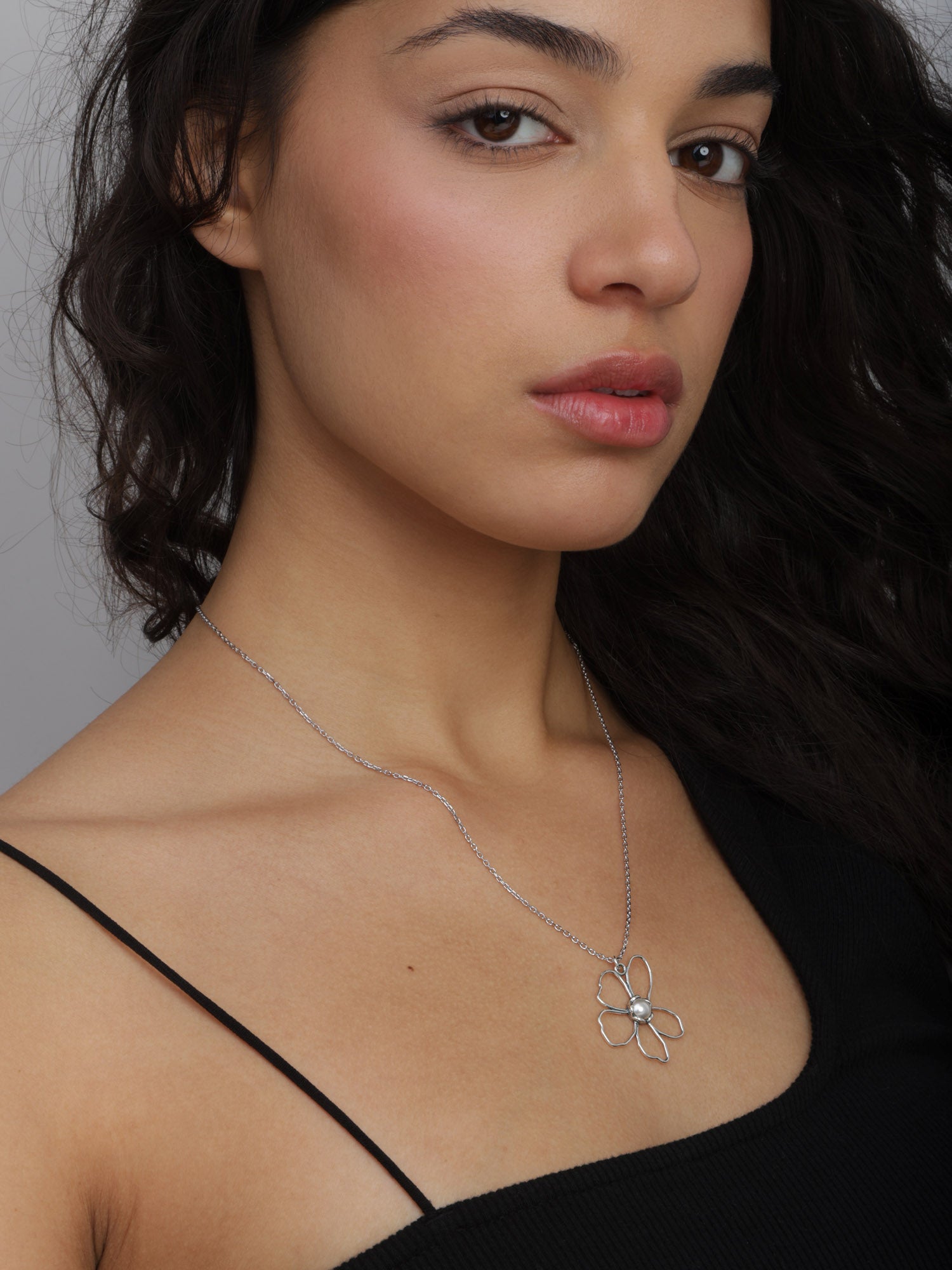 Collar colgante, Plata 925 bañada en rodio, Perla Swarovski artificial, Blanco, Flor, Artificial, Color plateado, longitud del colgante: 3.5 cm, ancho colgante: 3.5 cm, 3.90 g
