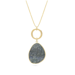 Collar colgante, Bañado en oro, Lapislázuli artificial, Azul, Lágrima, Círculo, Artificial, Color dorado, longitud del colgante: 6.0 cm, ancho colgante: 3.0 cm, 11.00 g