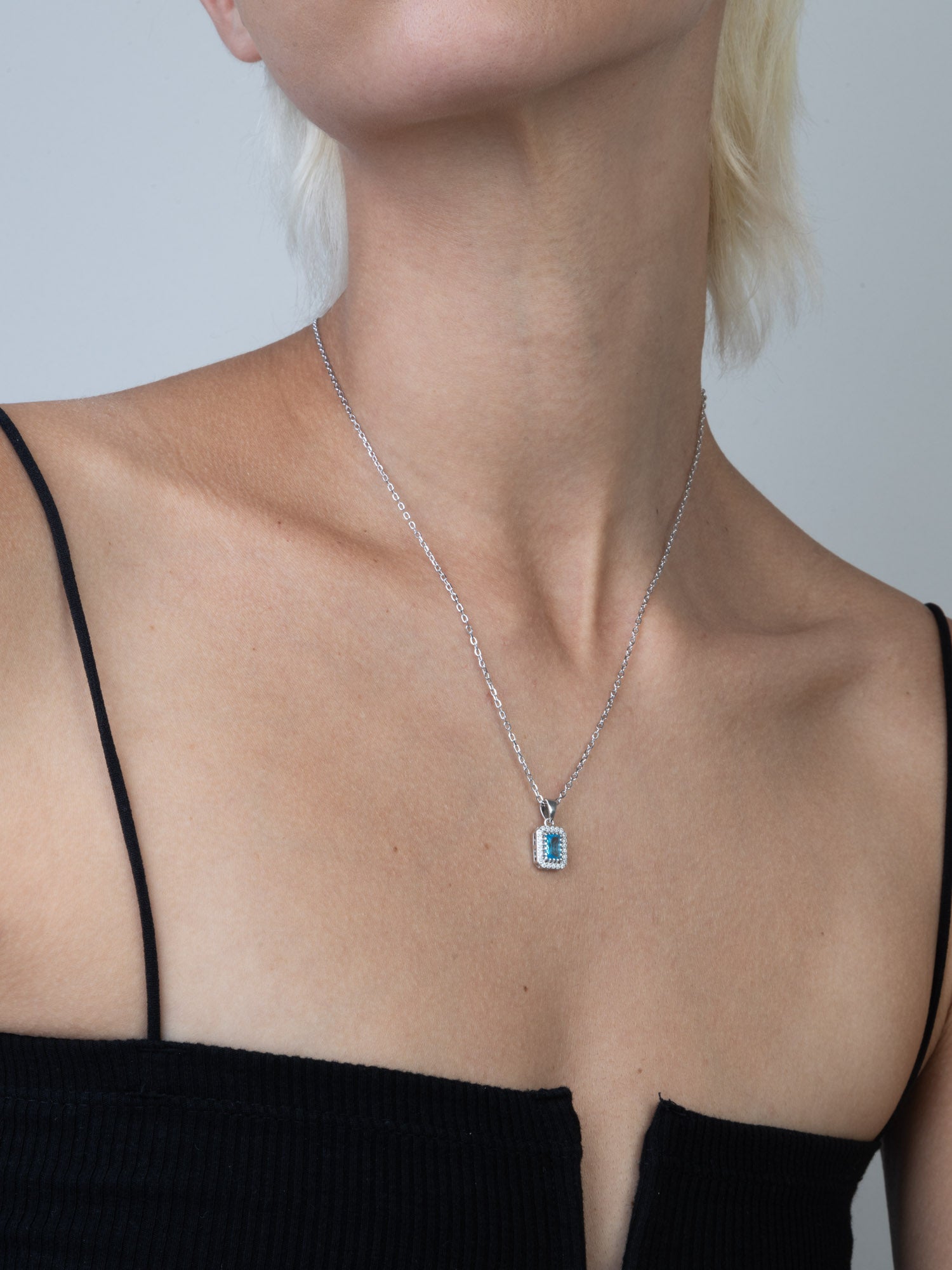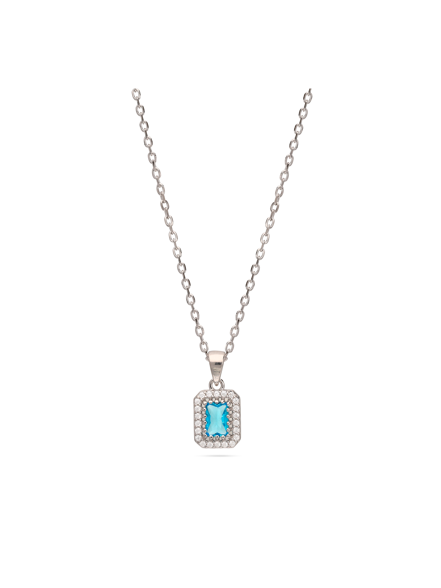 Collar colgante, Plata 925 bañada en rodio, Zirconia cúbica artificial, Celeste, Claro, Cuadrado, Artificial, Color plateado, longitud del colgante: 1.6 cm, ancho colgante: 0.8 cm, 3.41 g