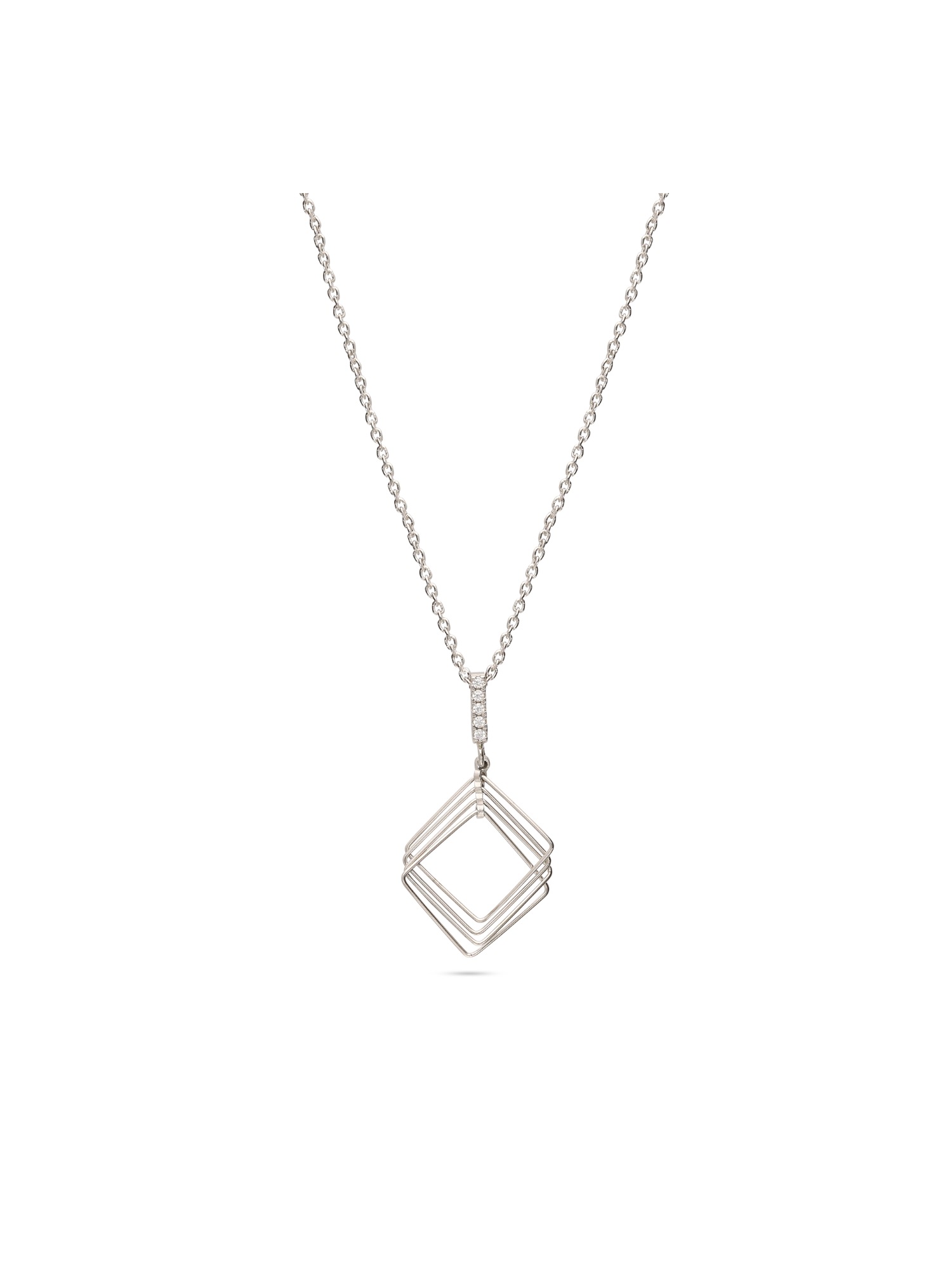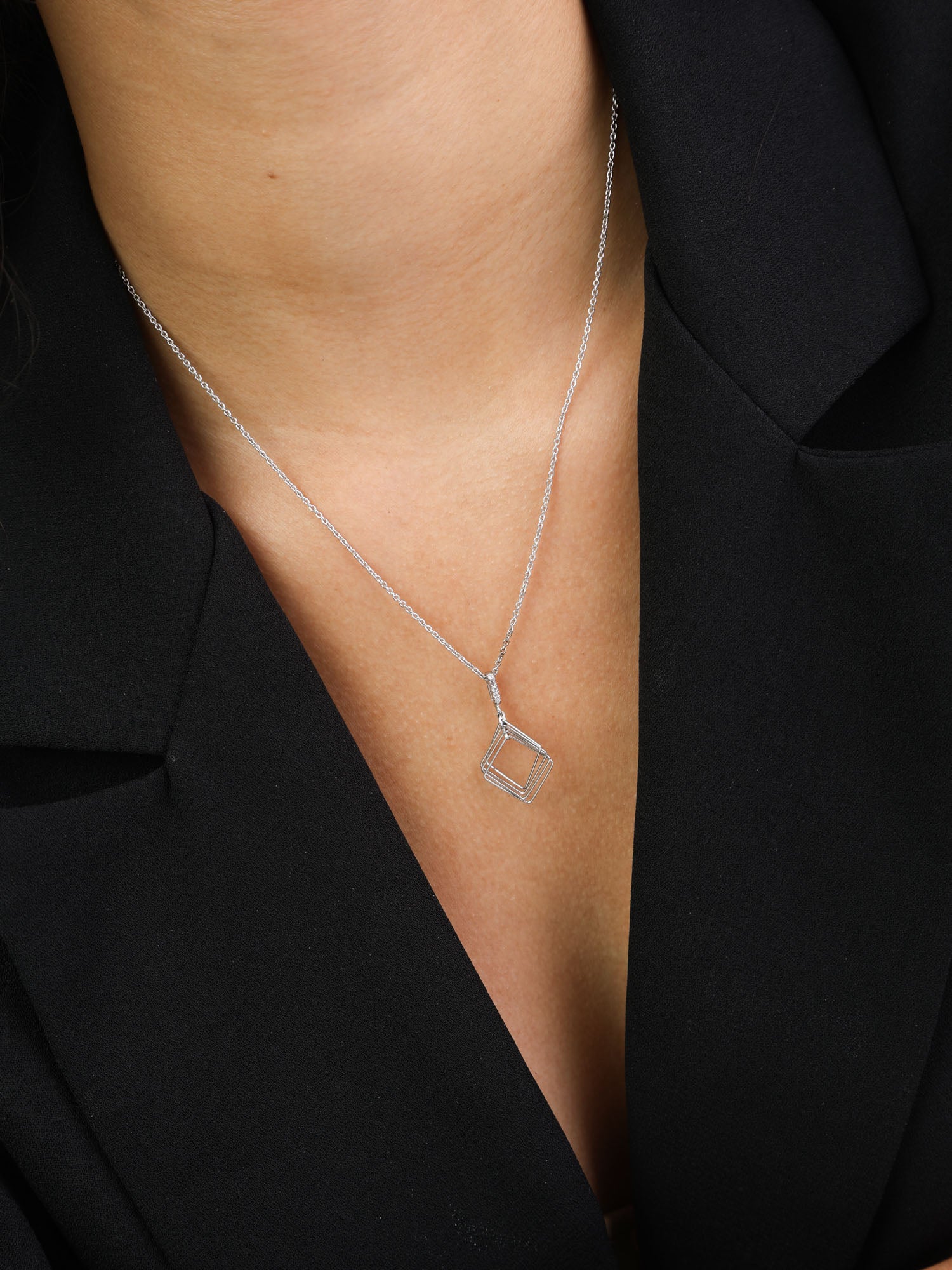 Collar colgante, Plata 925 bañada en rodio, Zirconia cúbica artificial, Claro, Cuadrado, Artificial, Color plateado, longitud del colgante: 3.0 cm, ancho colgante: 1.5 cm, 2.92 g