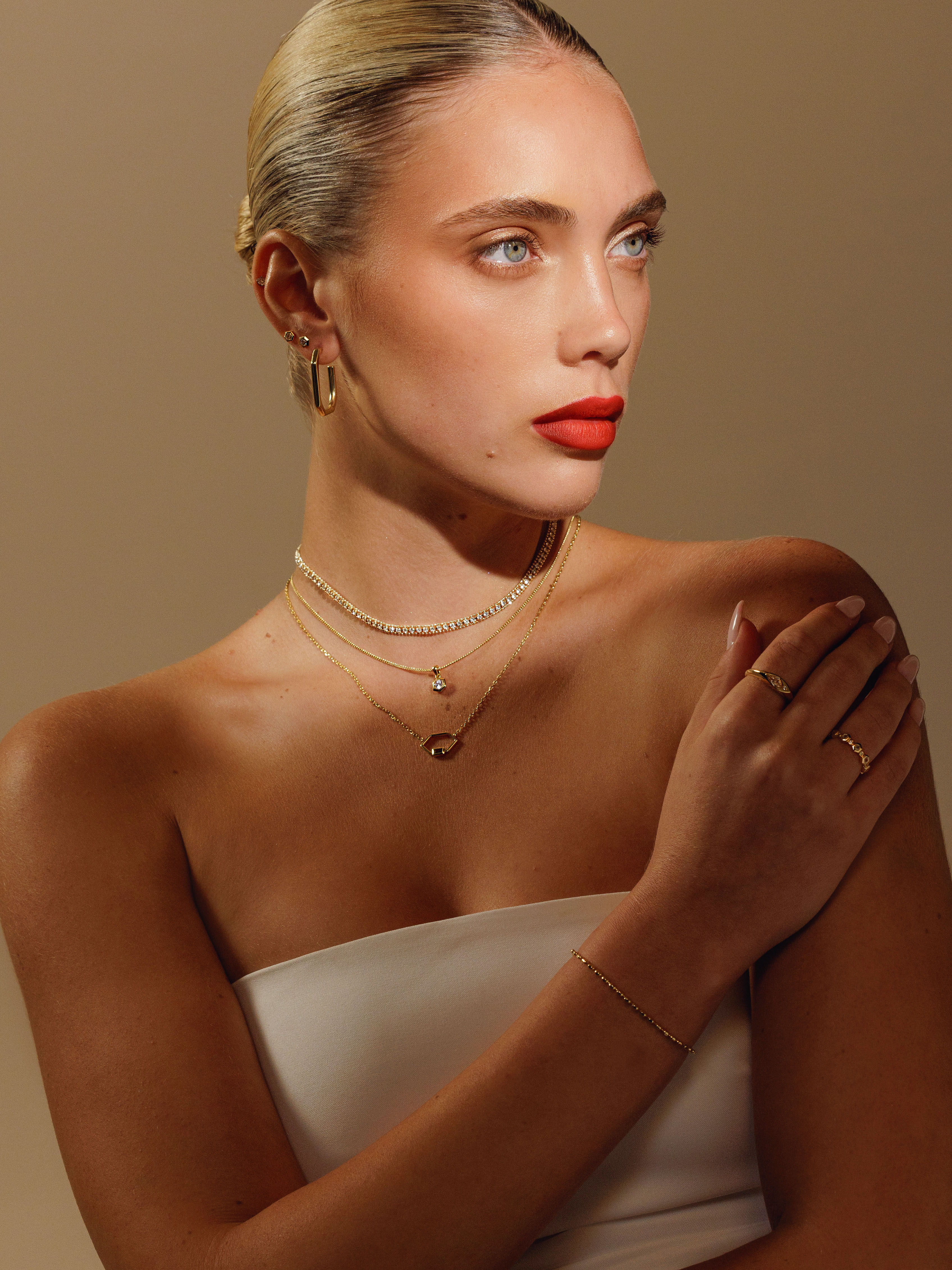 Collar colgante, Bañado en oro, Zirconia cúbica artificial