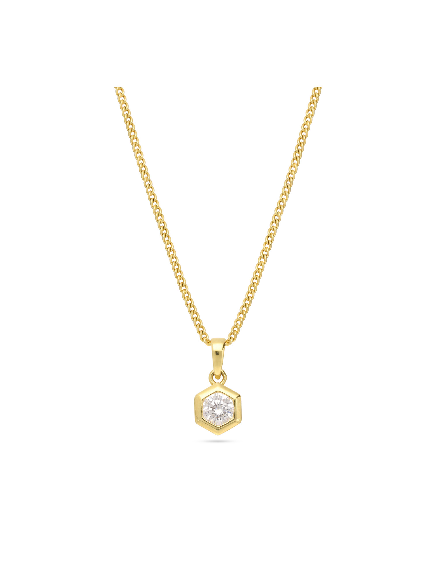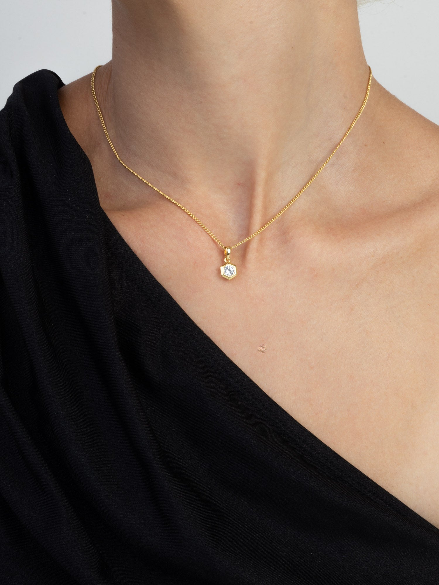 Collar colgante, Bañado en oro, Zirconia cúbica artificial, Claro, Hexágono, Artificial, Color dorado, longitud del colgante: 1.2 cm, ancho colgante: 0.5 cm, 3.05 g