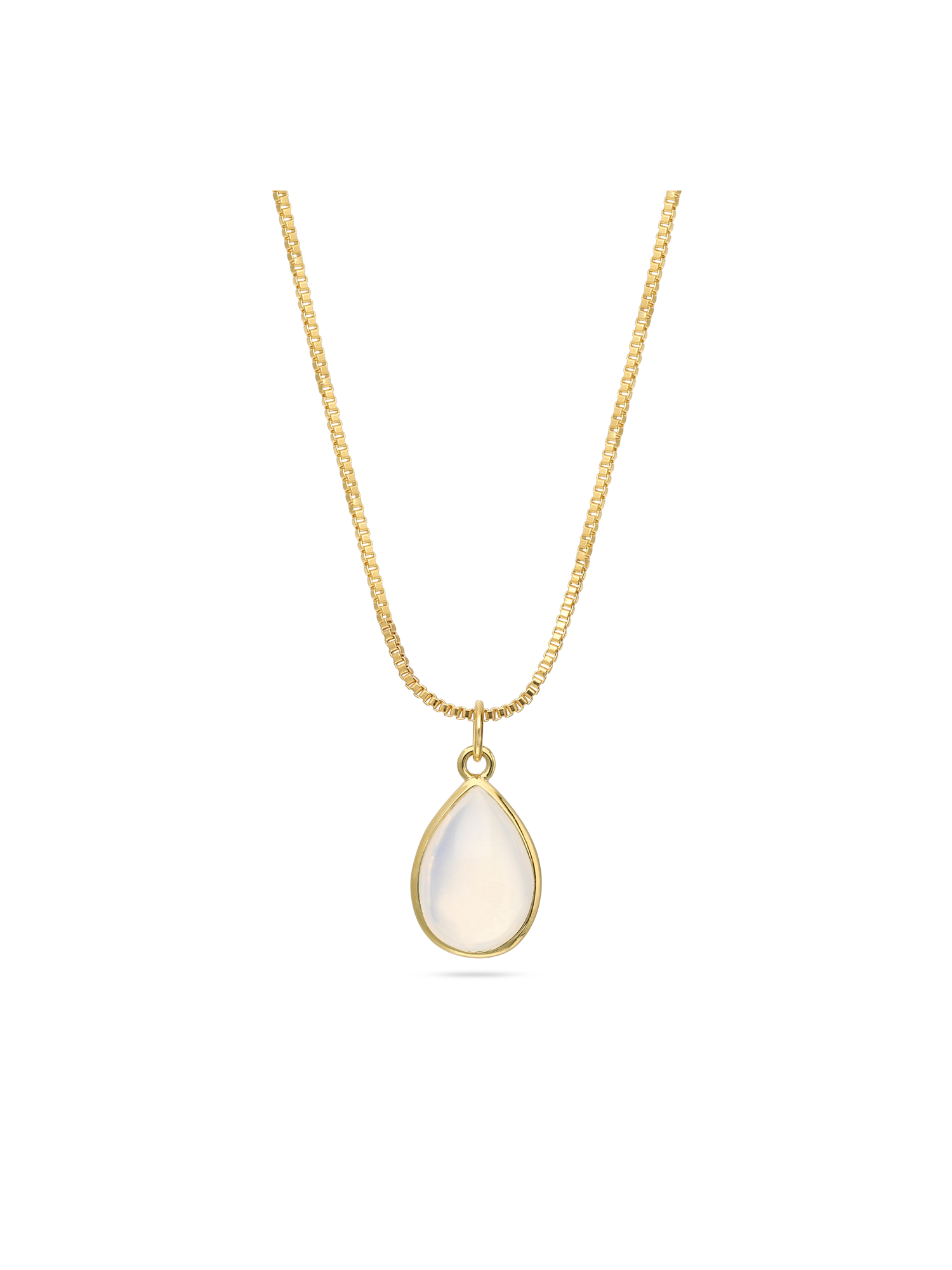 Collar colgante, Bañado en oro, Opalita artificial, Blanco, Lágrima, Hoja, Artificial, Color dorado, longitud del colgante: 1.5 cm, ancho colgante: 0.9 cm, 3.34 g