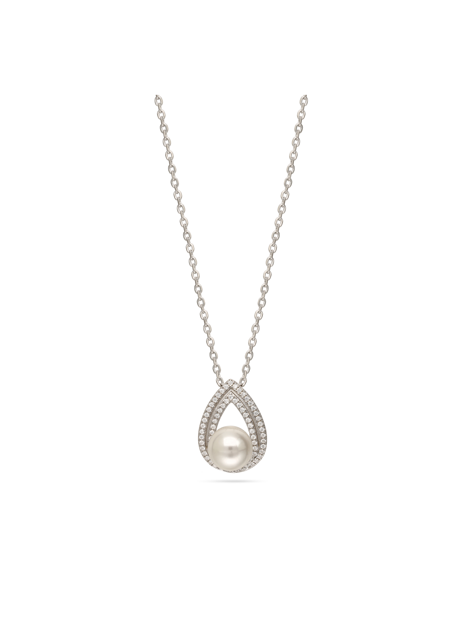 Collar colgante, Plata 925 bañada en rodio, Zirconia cúbica artificial, Esmalte, Perla Swarovski artificial
