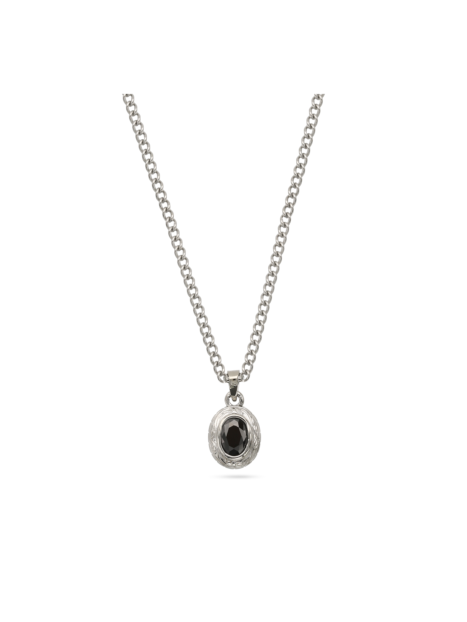 collar de hombre, Acero inoxidable, Zirconia cúbica artificial, Negro, Círculo, Artificial, Color plateado, longitud del colgante: 1.8 cm, ancho colgante: 1.0 cm, 6.92 g