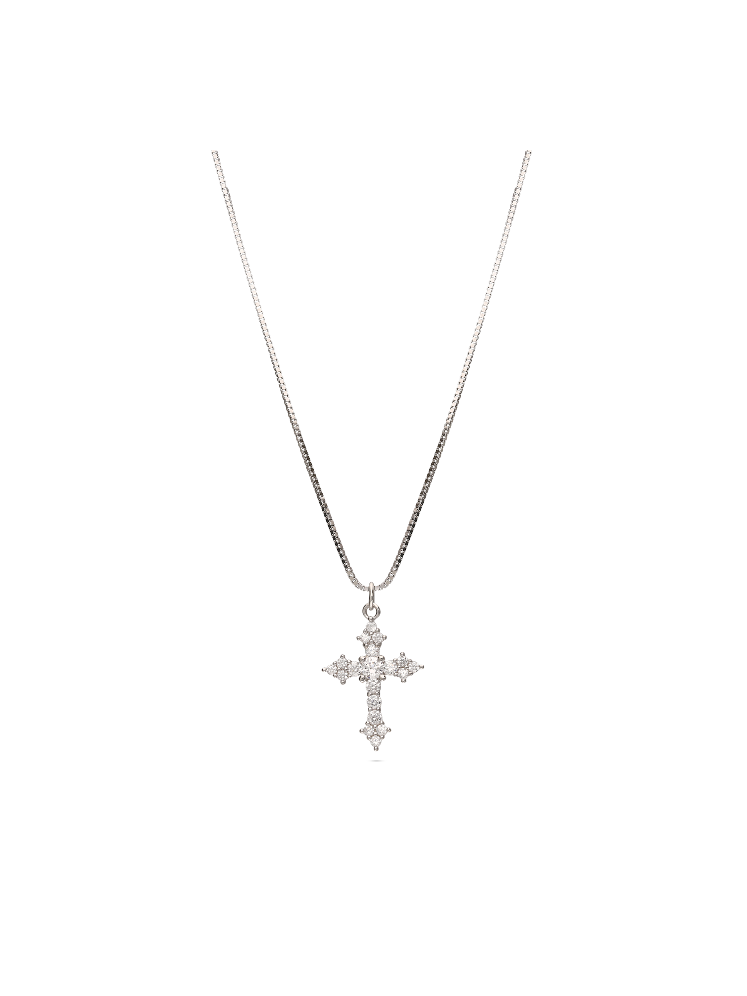 Collar colgante, Plata 925 bañada en rodio, Zirconia cúbica artificial, Claro, Cruz, Artificial, Color plateado, 2.28 g