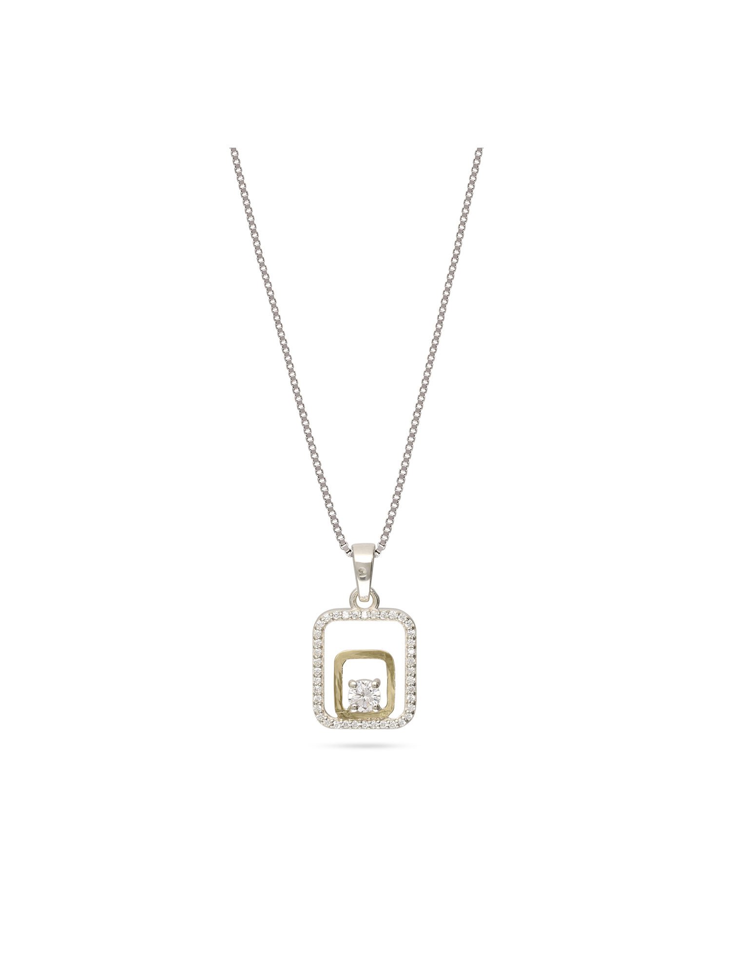 Collar colgante, Plata 925 con oro 9k, Zirconia cúbica artificial, Claro, Cuadrado, Círculo, Artificial, DOS TONOS, longitud del colgante: 2.5 cm, ancho colgante: 1.3 cm, 3.30 g